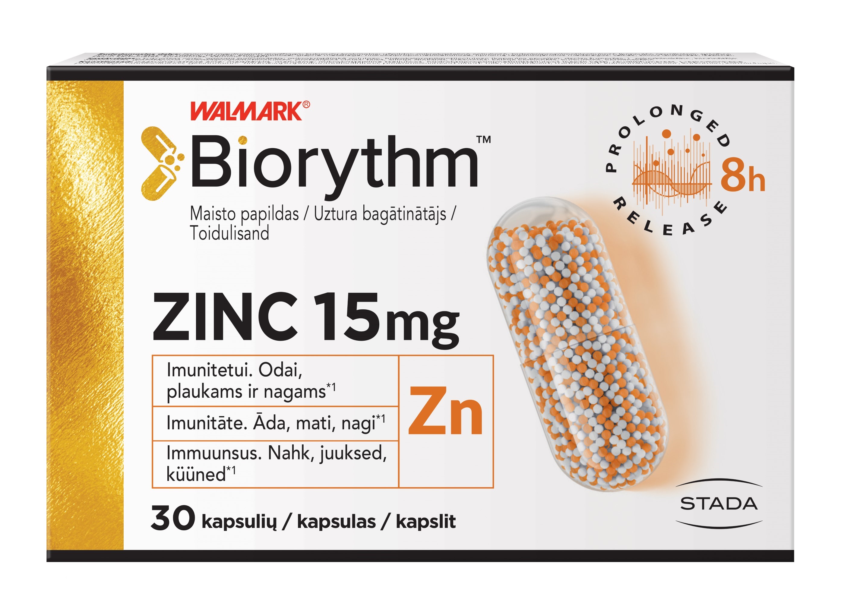 Tootetutvustus Biorythm ZINC 15 mg 30 kapslit Toidulisand Immuunsus. Nahk, juuksed, küüned*1 Biorythm™ sarja tootmisel kasutatakse toidulisandite jaoks uuenduslikku ja ainulaadset tehnoloogiat - Sustained Release (SR) - tehnoloogia toimeainete pikendatud vabanemiseks. Erilised mikrograanulid vabastavad toimeaineid 8 tunni jooksul. *1Tsink - aitab kaasa immuunsüsteemi normaalsele talitlusele - aitab hoida nahka, juukseid ja küüsi normaalsena - aitab kaitsta rakke oksüdatiivse stressi eest Päevase...