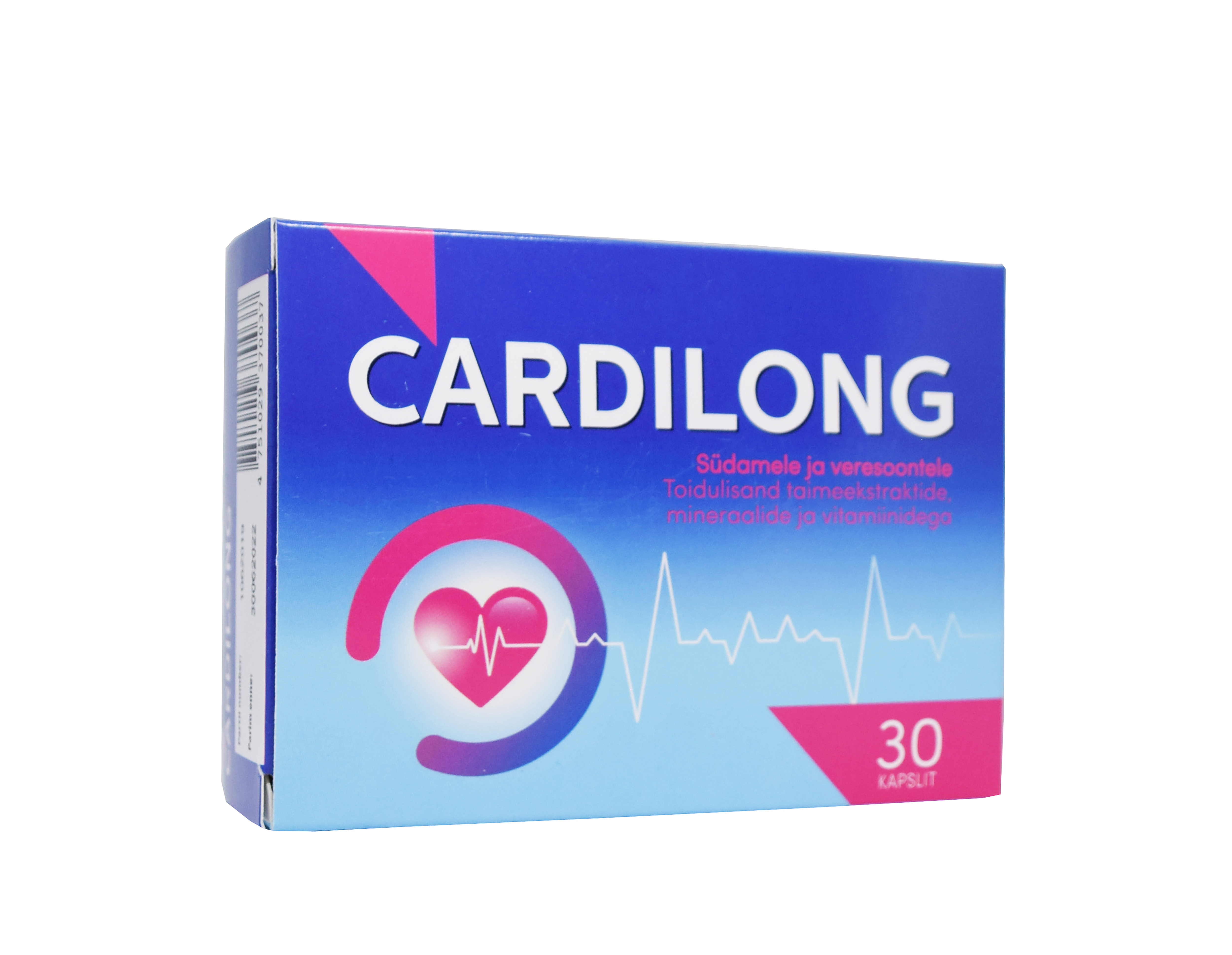 Tootetutvustus Cardilong kapslid Toidulisand taimeekstraktide, mineraalainetega ja vitamiinidega. 30 kapslit Südamele ja veresoontele. Tiamiin aitab kaasa normaalsele südametalitlusele. Viirpuuõite ekstrakt rahustab ja toetab südame tööd. Magneesium aitab kaasa normaalsele energiavahetusele (2 kapsli tarbimisel). Hõlmikpuu (Ginkgo biloba) ekstrakt sisaldab flavoonglükosiide ning terpeenlaktoone, mis toetavad veresoonte tööd. Palderjani juurte ekstrakti kasutatakse südametegevust toetava vahendin...