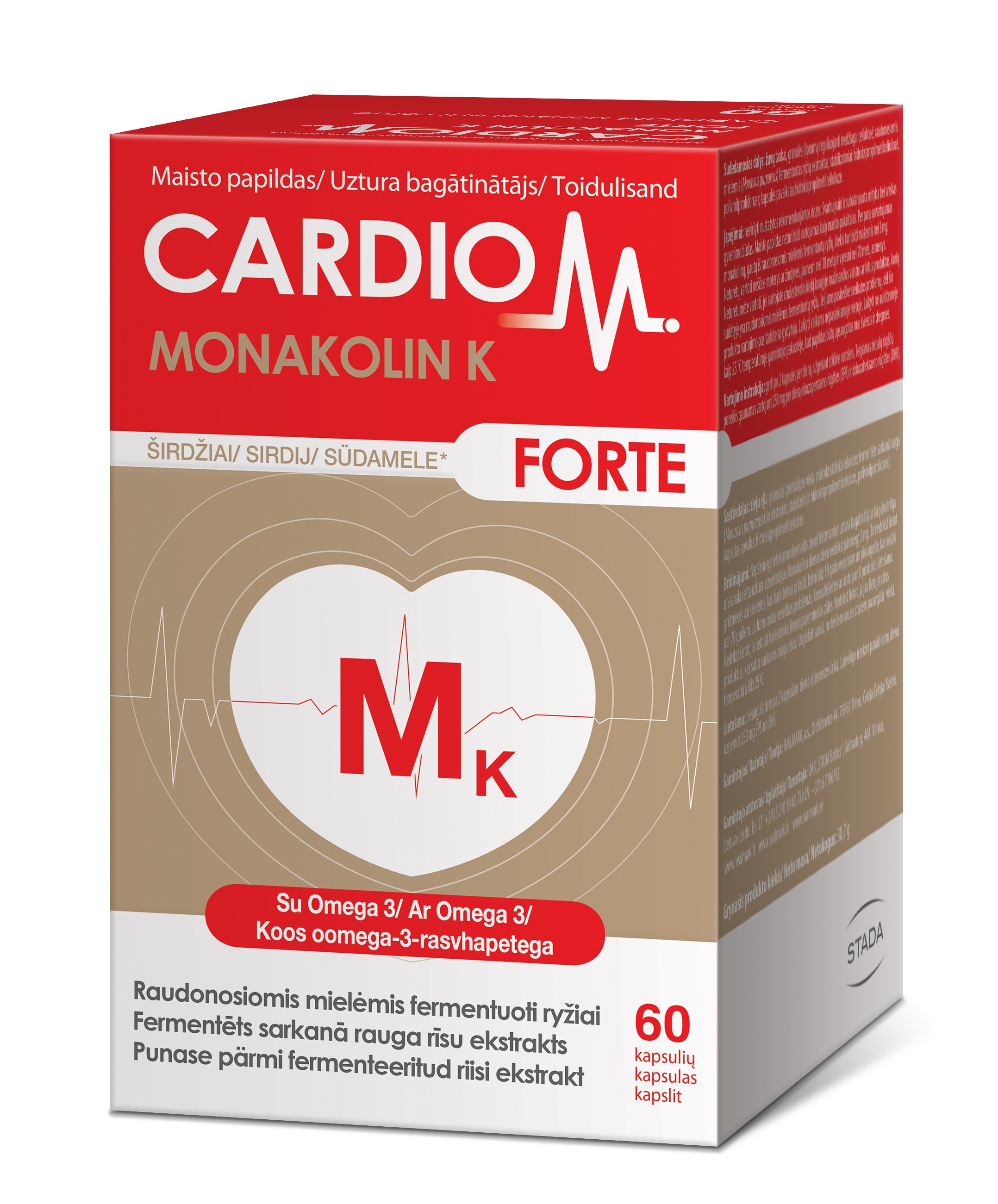 Tootetutvustus CardioM Monakolin K Toidulisand südamele Kalaõli sisaldab olulist oomega-3 rasvhappeid. EPA ja DHA aitavad kaasa normaalsele südametalitlusele. Kasulik toime avaldub siis, kui päevas tarbitakse 250 mg EPA-d ja DHA-d. Päevaseks tarbimiseks soovitatav kogus ning tarvitamisjuhised Täiskasvanutele 2 kapslit päevas koos toiduga. Sisaldus päevase annuse kohta Päevane annus 2 kapslit sisaldab: Kalaõli, mis sisaldab oomega-3 küllastumata rasvhappeid: EPA 18%, DHA 12% - 800,0 g / 144,0 g /...