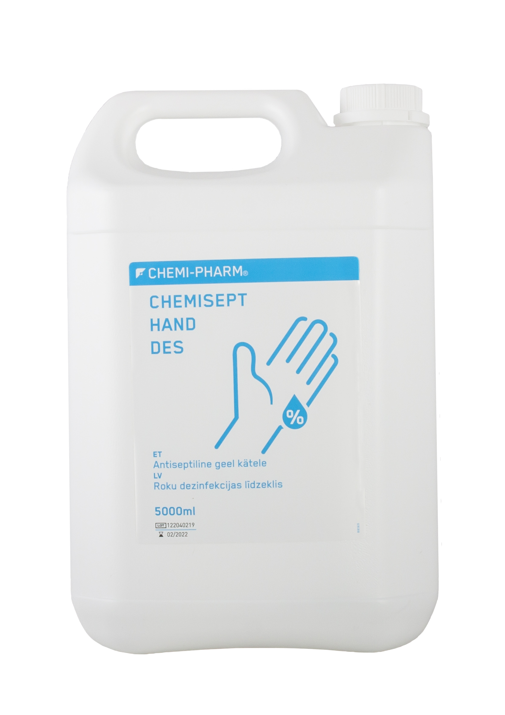 Tootetutvustus, kasutusviis CHEMISEPT HAND DES on alkoholi baasil käte antiseptikum mõeldud kasutamiseks kõrgendatud hügieeninõuete tingimustes, kus käte antiseptika on tähtsaim profülaktiline abinõu infektsiooni vältimiseks. CHEMISEPT HAND DES on laia bakteritsiidse ja fungitsiidse toimega, hävitab Gram-negatiivseid ja Gram-positiivseid baktereid (sh tuberkuloositekitaja) ja seeni, desaktiveerib nii ümbrisega (sh HBV, HIV, HCV, Vaccinia) kui ka ümbriseta viiruseid (sh Adeno, Rota). ...