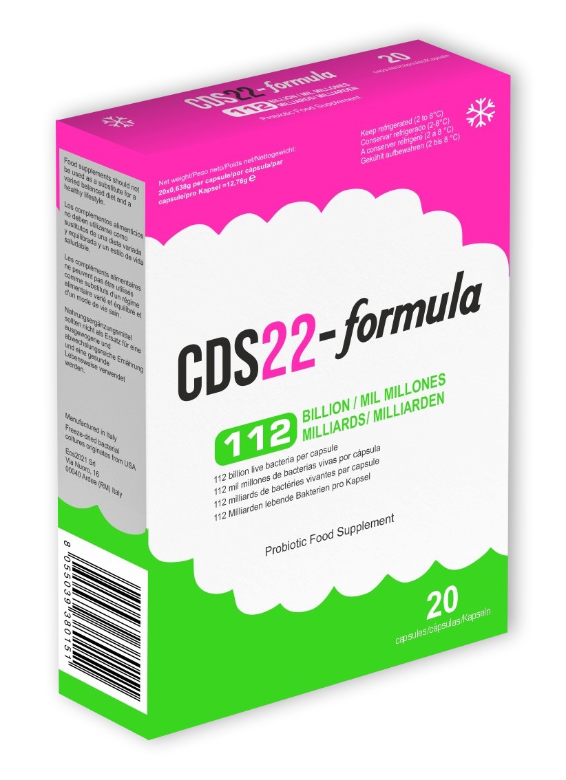 Tootetutvustus CDS22-formula 112miljardit kapslid N20 112miljardit bakterit kapslis. 20 kapslit. Päevaseks tarbimiseks soovitatav kogus ning tarvitamisjuhised Täiskasvanud ja lapsed vanuses 7+aastat: 1-4 kapslit päevas, eelistatult enne sööki, suure klaasi veega. Lapsed vanuses 3-6 aastat: 1-2 kapslit päevas. Kapsel tuleks avada ja segada kapsli sisu jogurti või puuviljamahlaga. Sisaldus päevase annuse kohta Elusbakterid 1 kapslis 4 kapslis Streptococcus thermophilus NCIMB 30438 58x109 CFU 232x1...