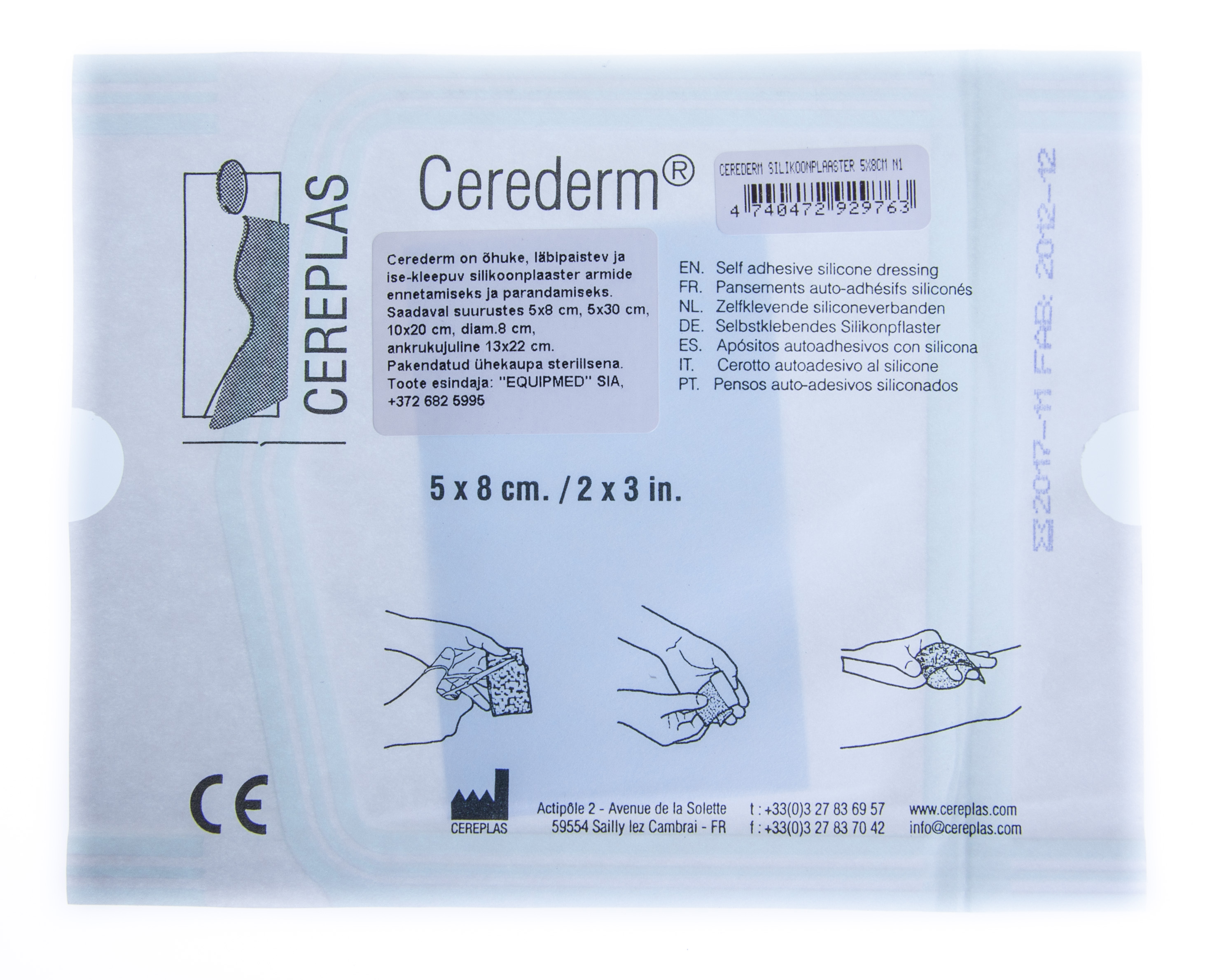 Cerederm on ise-kleepuv silikoonplaaster armide ennetamiseks ja parandamiseks. Cerederm plaastri koostisosad on valitud biosobivad. Erilist tähelepanu on pööratud meditsiinilisele silikoonile, mille iseloomulikud omadused koostöös välja arendatud tehnoloogiaga, tagavad piisava kleepumise ning valutu nahalt eemaldamise. Sobib kasutamiseks hüpertroofiliste ja keloidsete armide puhul. Samuti kasutatakse seda arme ennetava vahendina kinnikasvanud haavadel. Ei sobi kasutamiseks lahtistel haavadel. Kõ...