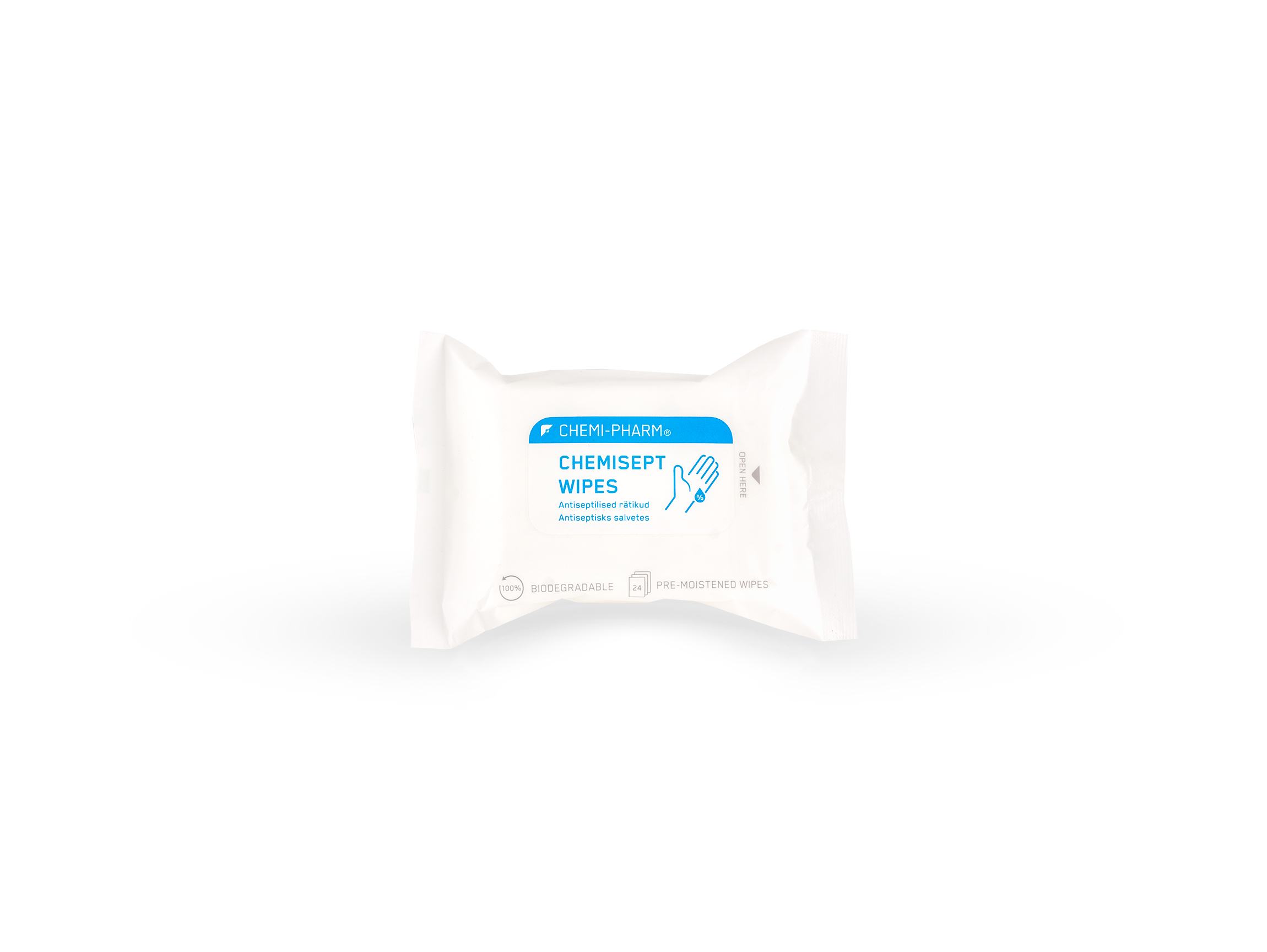 Tootetutvustus, kasutusviis Chemisept Wipes rätikud käte antiseptikaks on nahasõbralikud ning sobivad ka väikelaste käte puhastamiseks. Alkoholibaasiline immutuslahus sisaldab pantenooli, millel on nahka pehmendav, niisutav ja põletikuvastane toime. Toode on laia fungitsiidse, virutsiidse ja bakteritsiidse toimega. Toode on laia fungitsiidse, virutsiidse ja bakteritsiidse toimega. Toode on nahasõbralik ja sisaldab pantenooli, millel on nahka pehmendav, niisutav ja põletikuvastane toime. ...