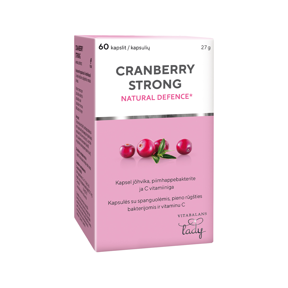 Tootetutvustus Tugevat jõhvikaekstrakti sisaldav Cranberry Strong sisaldab standardset kogust jõhvika bioaktiivseid PAC -sid annuses 72 mg päevas. Kapsel sisaldab ka palju C -vitamiini, et soodustada organismi enda vastupanuvõime normaalset toimimist. C-vitamiin aitab kaasa immuunsüsteemi normaalsele talitlusele. Cranberry Strong Natural Defense sisaldab nelja erinevat piimhappebakteritüve, mis on tüüpilised intiimpiirkonna mikrobiootale (Lactobacillus acidophilus, Lactobacillus casei, Lactobaci...