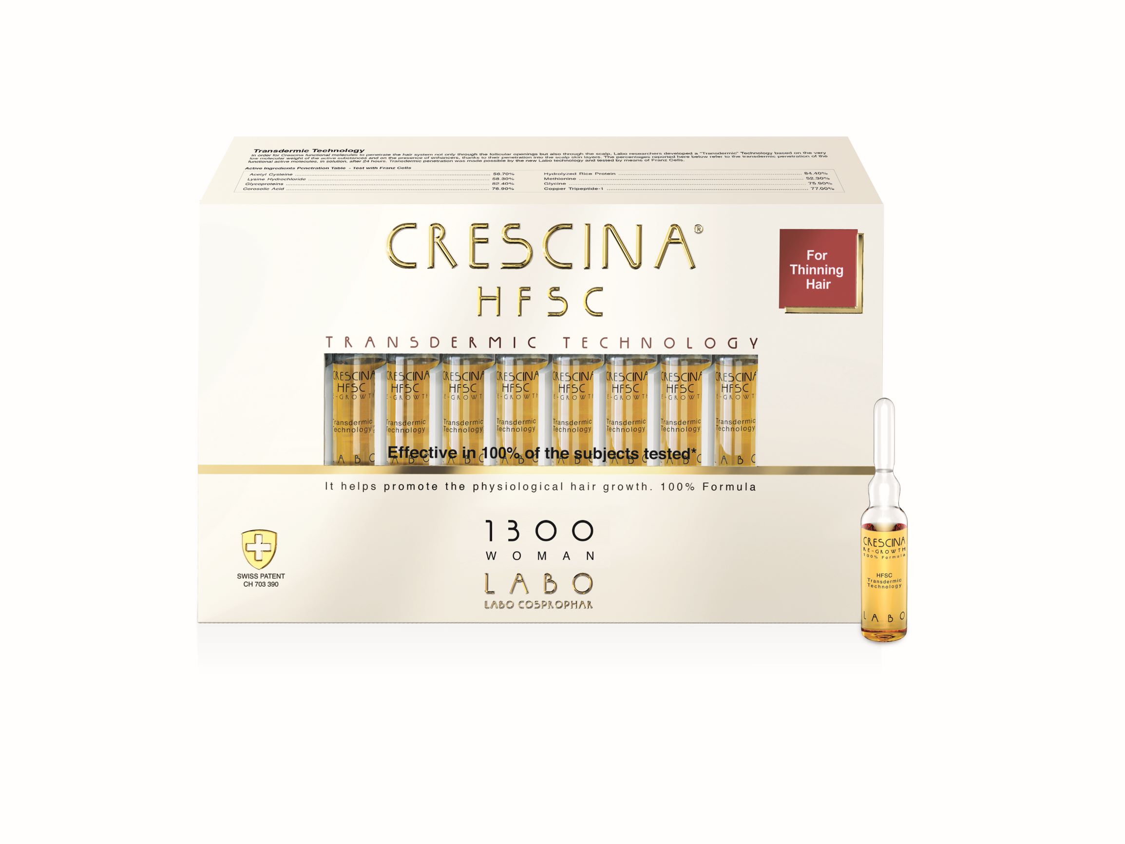 Dermakosmeetilised peanaha ampullid, mis soodustavad juuste loomulikku, füsioloogilist kasvu, tihendavad juukseid ja peatavad juuste väljalangemise. Toode sisaldab Re-Growthi kompleksi (tsüsteiin, lüsiin, glükoproteiin), HFSC kompleksi (tüvirakkude aktivaator: hüdrolüüsitud riisivalk, korosoolhape) ja uut kasvu soodustavat kompleksi Booster (metioniin, glütsiin, vasktripeptiid-1). Seda täiustab Labo transdermaalne tehnoloogia, mis on rikastatud 3 tugevdajaga (...