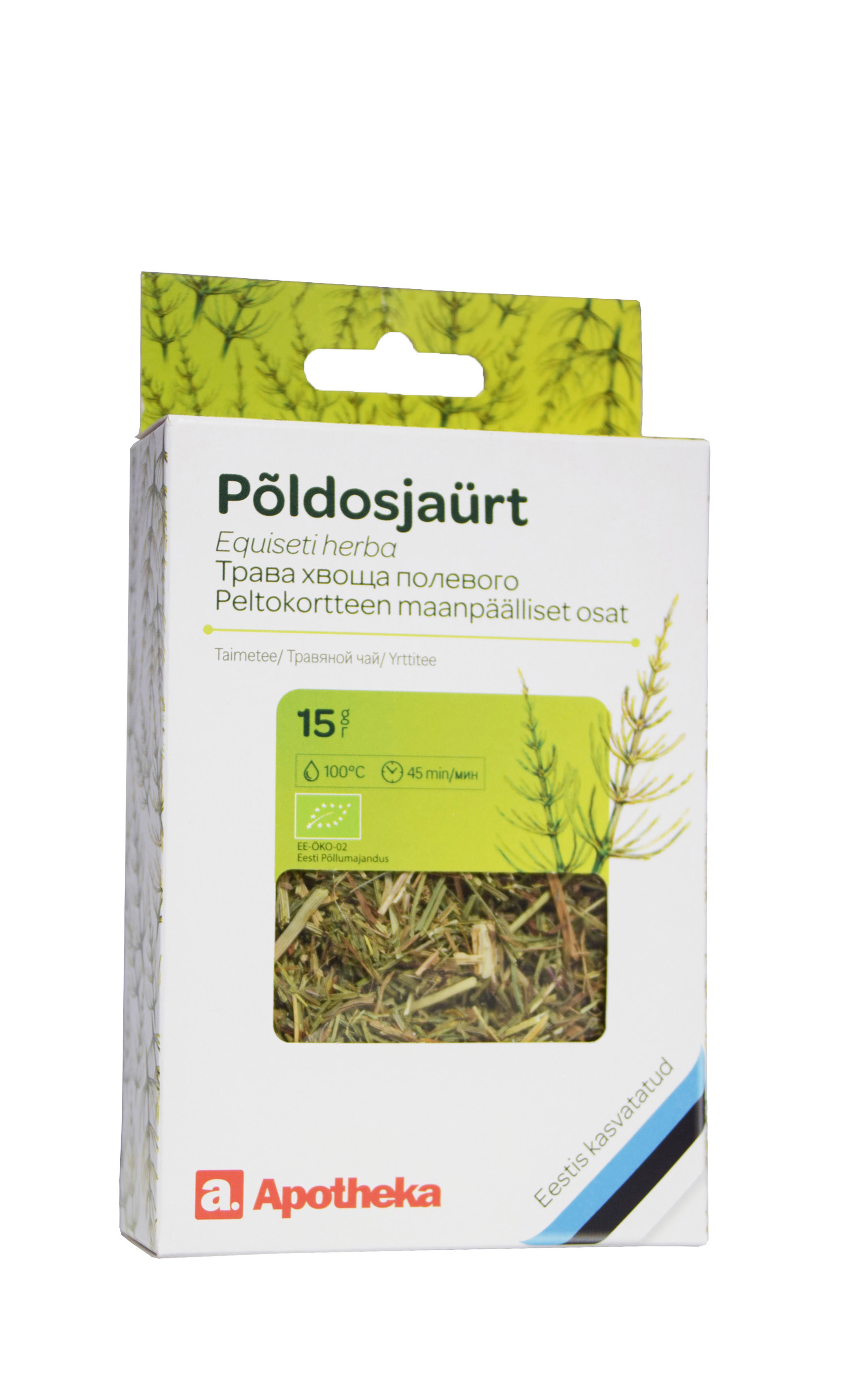 Mahe- või ökotoode Tootetutvustus Põldosjaürt (Equiseti herba). Taimetee. Toetab uriinieritust. Aitab varustada organismi mineraalainetega. Aitab säilitada veresoonte ja arterite seinte tugevust ning arterite elastsust. Toetab südamelihase varustamist hapnikurikka verega. Päevaseks tarbimiseks soovitatav kogus ning tarvitamisjuhised Valmistamine: Võtta 1 spl ürti, valada üle klaasitäie keeva veega. Lasta tõmmata 45 minutit, kurnata. Kasutamine: Juua 1 klaasitäis päevas. Mitte tarvitada järjest ü...