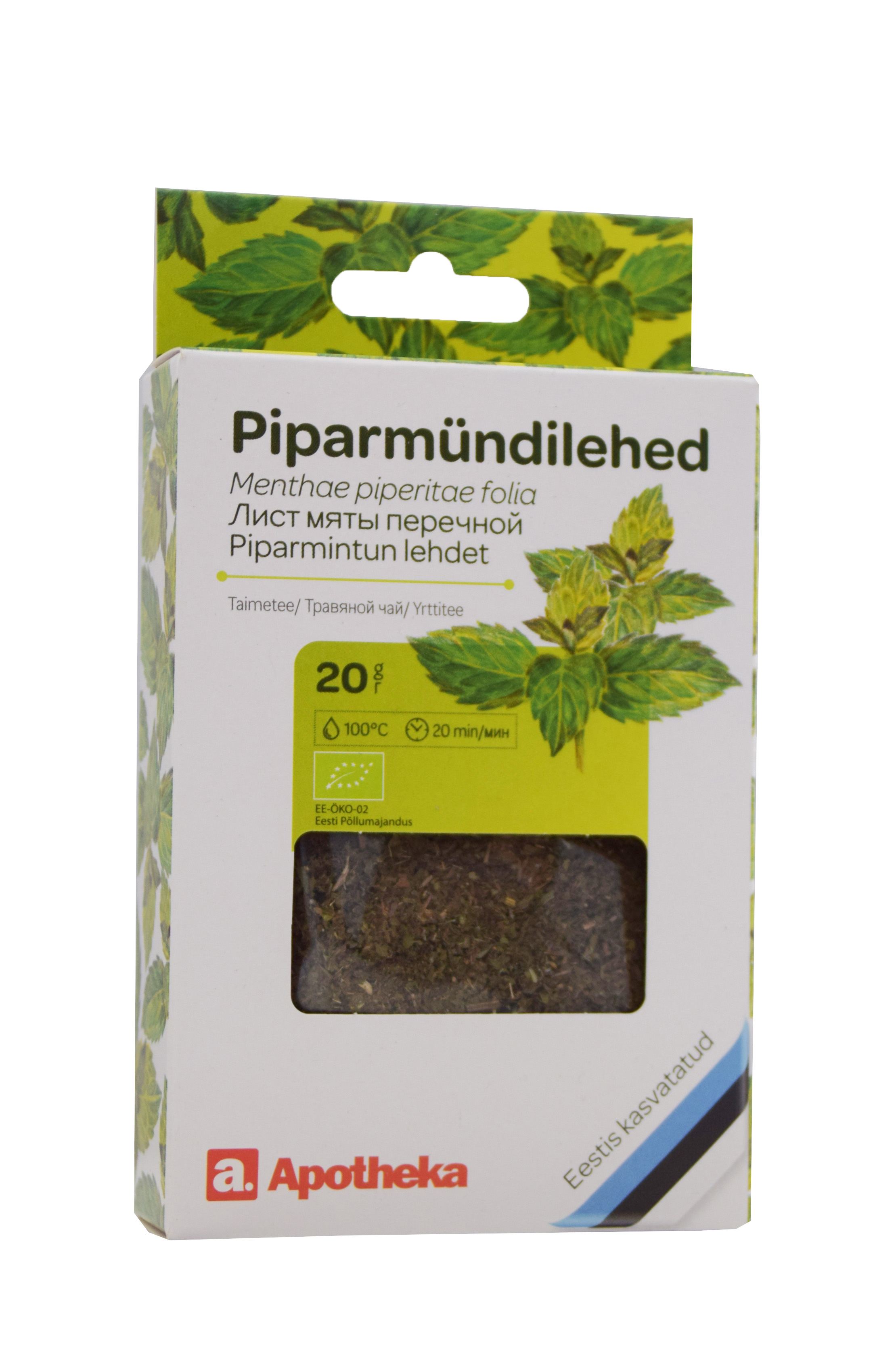 Mahe- või ökotoode Tootetutvustus Piparmündilehed (Menthae piperitae folia). Taimetee. Piparmündilehed: Aitavad toetada tervislikku seedimist ning aitavad kaasa seedetrakti normaalsele funktsioonile, aitavad hoida magu tervena. Rahustav mõju kurgule, neelule ja häälepaeltele. Aitavad toetada lõõgastumist. Toetavad ja aitavad säilitada normaalset ja tervislikku und. Varustatud EL-i mahetoodete logoga (EE-ÖKO-02 Eesti Põllumajandus). Päevaseks tarbimiseks soovitatav kogus ning tarvitamisjuhised Va...