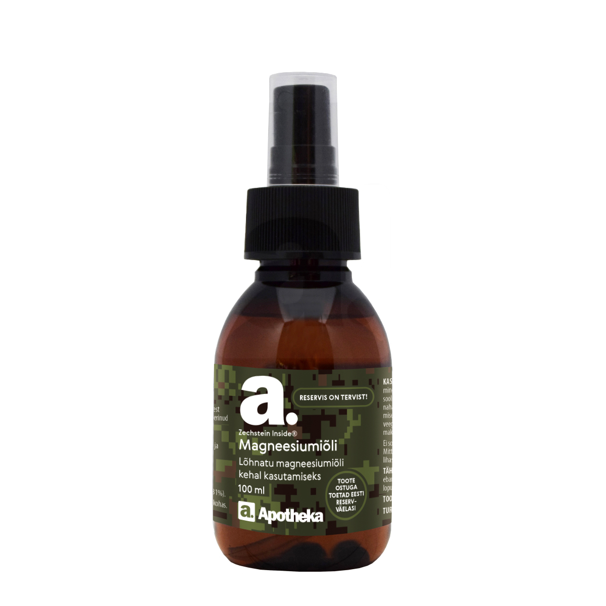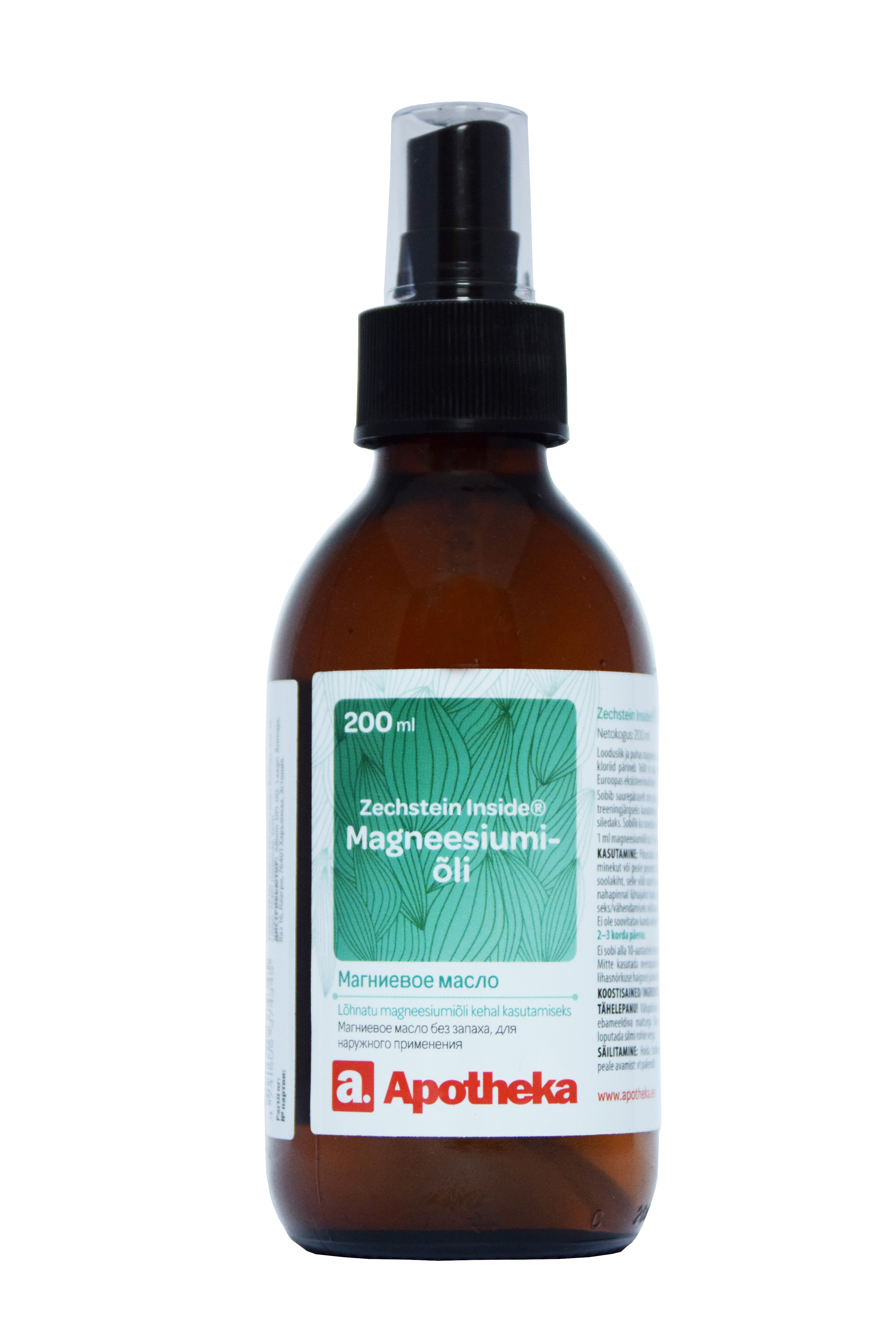 Zechstein Inside® magneesiumiõli. Lõhnatu magneesiumiõli kehal kasutamiseks. Looduslik ja puhas magneesiumiallikas tervele kehale. Zechstein Inside® magneesiumkloriid pärineb 1600 m sügavusest maapõuest - 250 miljonit aastat tagasi Loode-Euroopas eksisteerinud iidsest Zechstein'i merest. 1 ml magneesiumiõli (ca 5-6 pihustust) sisaldab 105 mg magneesiumi. Sobib suurepäraselt otse pinges olevatele lihaspiirkondadele kandmiseks, sealhulgas treeningjärgseks kasutamiseks. Sii...