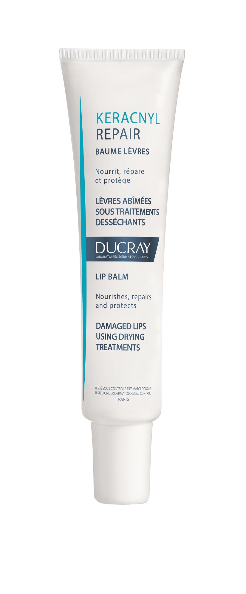 Ducray Keracnyl Repair huulepalsam 15 ml TOITEV-KOMPENSEERIV Kuivatava ravi tagajärjel erihooldust vajavatele huultele Taastab huuli 1 tunniga* Kompenseerib kuivatava ravi tagajärjel tekkinud kõrvalmõjusid. Toode on rikastatud hüdroksüdetsiiniga, mis on mesilaspiimast saadud, hooldab kuivaks muutunud huuli 1 tunniga*, rahustab ja niisutab 24 tundi**. *Mõõdetud märkamatu veekaotus 1 tunni jooksul pärast ühekordset kasutamist 21 katsealusel. **Instrumentaalne test pärast 1...