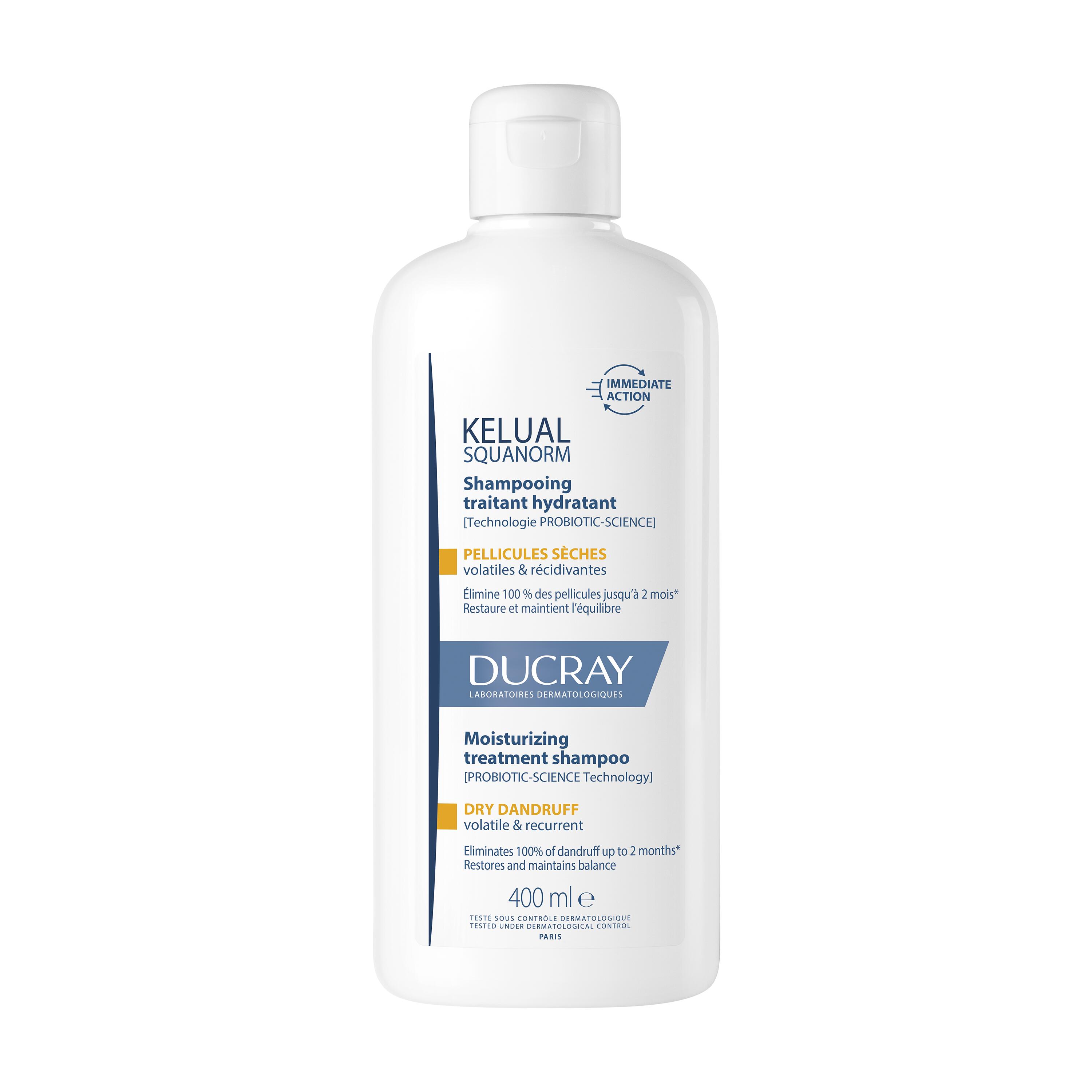 Ducray Kelual Squanorm niisutav kõõmavastane šampoon 400 ml KUIV KÕÕM. Lenduv ja taaskorduv Kõrvaldab 100% kõõma kuni 2 kuuks Taastab ja säilitab tasakaalu PROBIOTIC-SCIENCE tehnoloogia jäljendab tõhusalt probiootikumide pikaajalist mõju ja toimib kõõmale koheselt. Õrn puhastusbaas kombineeritud 3 ÜLITÕHUSA AKTIIVAINEGA: Merevaikhape: keratoosi vähendav, koorib ja puhastab peanahka, kõrvaldades kõõma; Piroktoon olamiin: puhastab peanahka ja vähendab Malassezia pärmseene ...