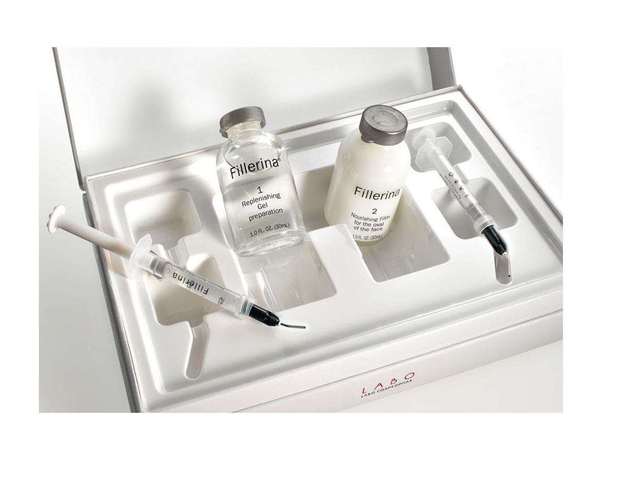 Fillerina* dermakosmeetiline täiteaine on mõeldud koduseks kasutamiseks. Vananemise- ja miimikakortsud. Põskede ja huulte täidlasemaks muutmiseks. Fillerina* dermakosmeetiline täiteaine koosneb geeljast täiteainest (Fillerina 1), mis sisaldab suures koguses kohe imenduvaid hüaluroonhappeid, ja toitvast kilejast kihist (Fillerina 2), mida kasutatakse kohe pärast geeli. „Fillerina“ kompleks – patenteeritud Šveitsis N. CH 705 713 B1. Aste 2: nähtavad vananemisest tingitud k...