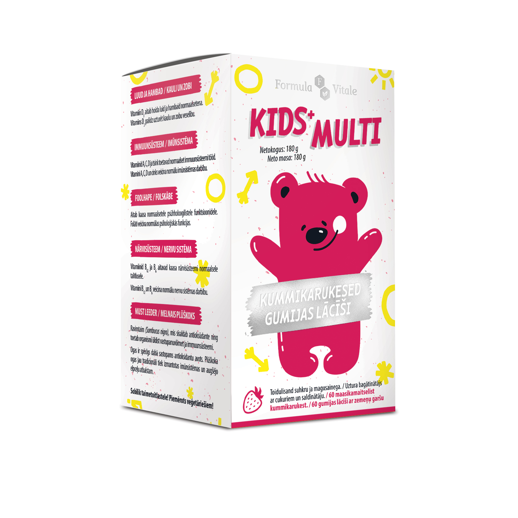 Tootetutvustus Formula Vitale- ENERGIAT IGASSE PÄEVA! 60 apelsinimaitselist kummikarukest KIDS+ MEGA on bioloogiliselt aktiivsete ainete; vitamiinide ja oomega-3 rasvhappe allikas, mis täiendab SINU LAPSE oluliste vitamiinide ja rasvhappe varusid. KIDS+ MEGA aitab hoida immuunsüsteemi, närvisüsteemi, ning luid ja hambaid normaalsetena. OOMEGA-3: Sisaldab linaõli, mis on tuntud oma rikkaliku oomega-3 rasvhappe alfa-linoleenhappe sisalduse poolest. LUUD ja HAMBAD: Vitamiin D3 aitab hoida luid ja h...