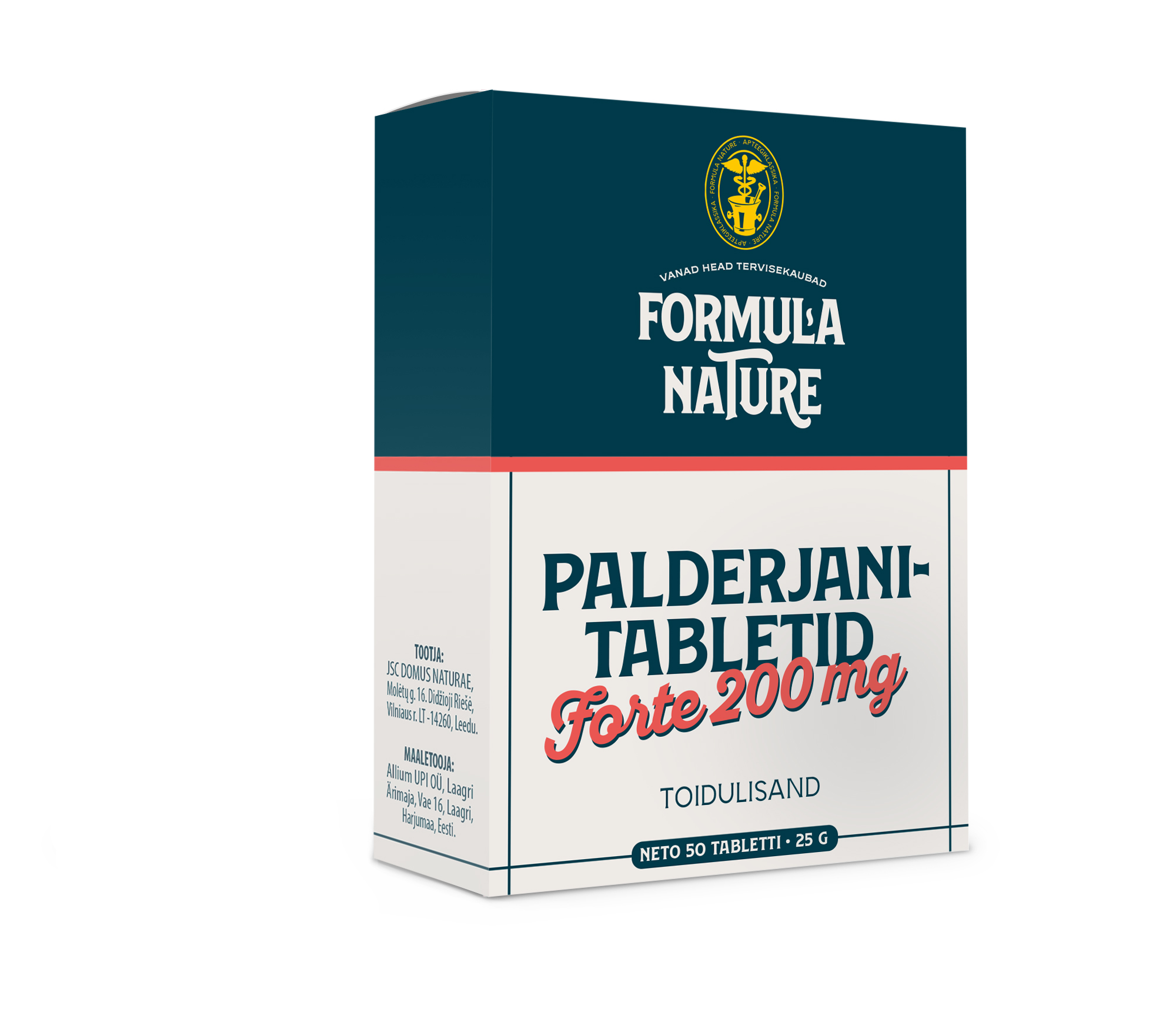 Tootetutvustus Toidulisand Palderjan aitab kiirest eluviisist tuleneva stressiga toime tulla, toetab rahunemist ning vaimset ja füüsilist heaolu. Palderjan aitab säilitada normaalset und, parandab südame funktsiooni ja normaliseerib vererõhku. Taimne, gluteeni- ja GMO-vaba. Päevaseks tarbimiseks soovitatav kogus ning tarvitamisjuhised Täiskasvanutel 1 tablett kuni kolm korda päevas. Mitte ületada päevaseks tarbimiseks soovitatavat kogust. Sisaldus päevase annuse kohta Päevane annus 1–3 tabletti ...