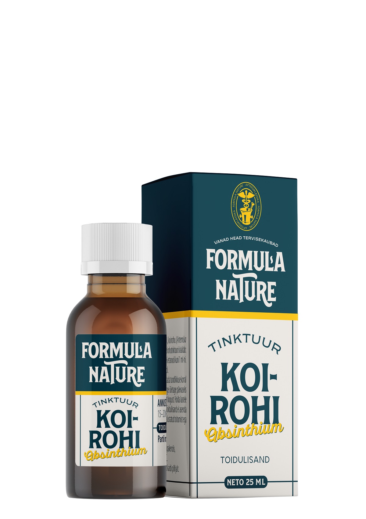 Tootetutvustus Toidulisand TAIMNE SUHKRUVABA GMP SERTIFIKAAT Päevaseks tarbimiseks soovitatav kogus ning tarvitamisjuhised Täiskasvanutel ja lastel alates 12. eluaastast 15-20 tilka segatuna vähese koguse veega 1-3 korda päevas. Sisaldus päevase annuse kohta Päevane annus 15-60 tilka sisaldab: 150-600 mg koirohuürti. Koostisosade loetelu (allergiat või talumatust põhjustav koostisosa või abiaine märgitud TRÜKITÄHTEDES) Etanool, koirohu (Artemisia absinthium L.) ürt. 1 ml koirohutinktuuri sisalda...