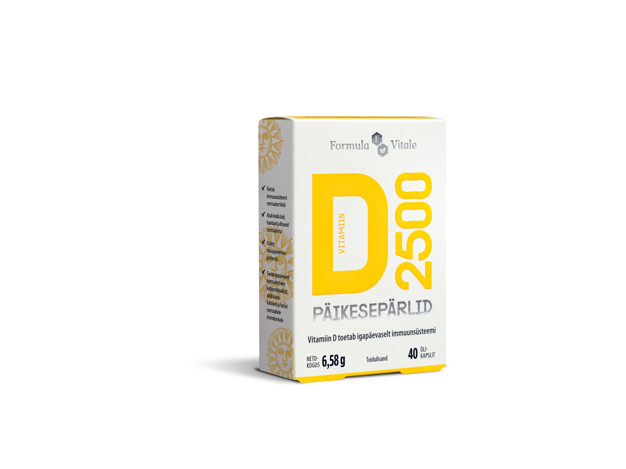 Tootetutvustus Formula Vitale - ENERGIAT IGASSE PÄEVA! Vitamiin D 100 µg (4000 IU) päikesetilgad sisaldavad kõrges kontsentratsioonis vitamiini D3, mis on D-vitamiini vormidest kõige bioaktiivsem. + Toetab immuunsüsteemi normaalset tööd + Aitab hoida luid, hambaid ja lihaseid normaalsena + Osaleb rakujagunemise protsessis + Toetab igapäevaselt normaalset vere kaltsiumisisaldust, aitab kaasa kaltsiumi ja fosfori normaalsele imendumisele Päevaseks tarbimiseks soovitatav kogus ning tarvitamisjuhise...