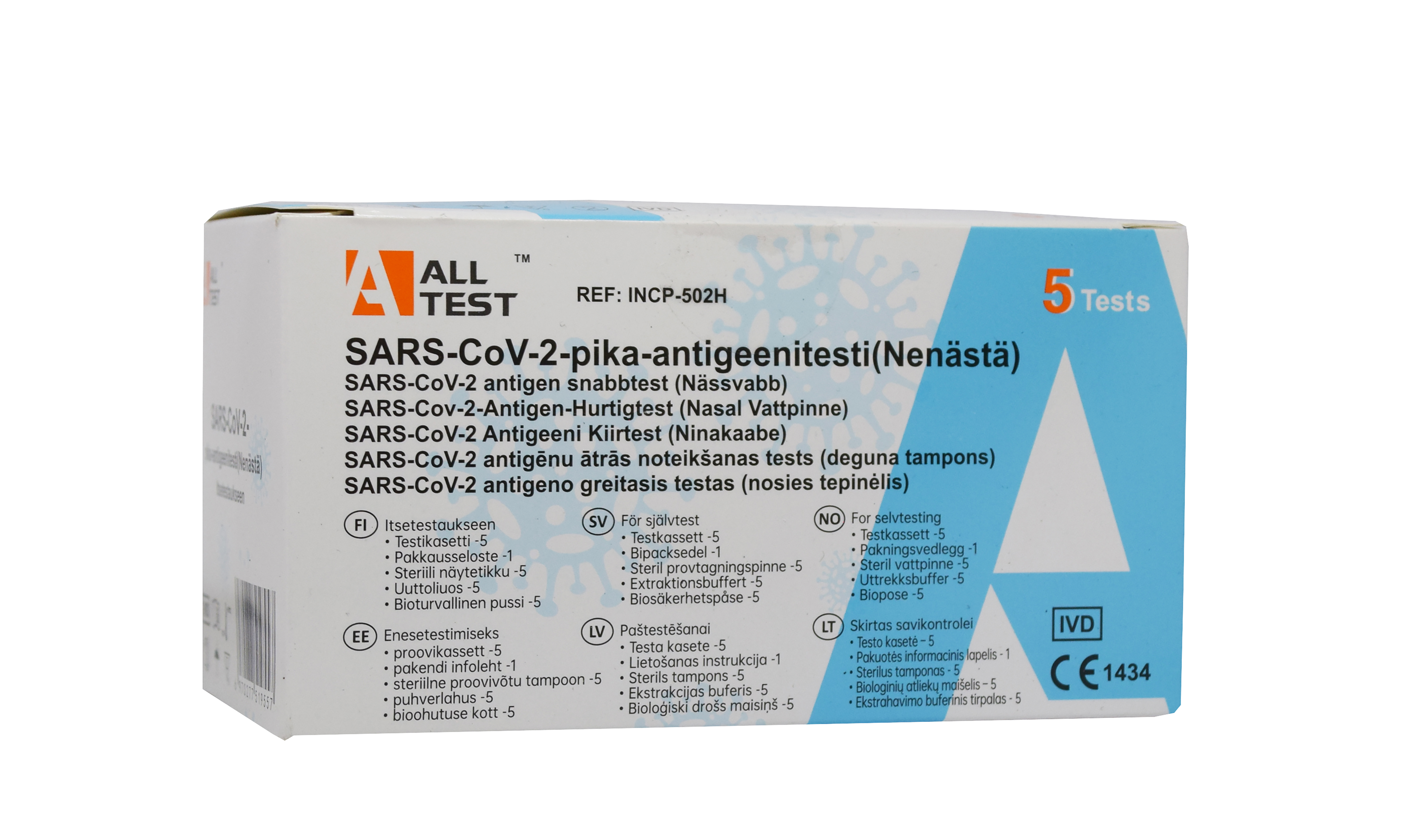 SARS-CoV-2 ning A-gripi ja B-gripi viiruse antigeenide ühiskiirtest (ninakaabe) Kiirtest SARS-CoV-2 nukleokapsiidi valgu, A-gripi ja B-gripi viiruse nukleoproteiinide vastu tekkinud antigeenide kvalitatiivseks tuvastamiseks ninakaape proovis. SARS-CoV-2 ning A-gripi ja B-gripi viiruse antigeenide ühiskiirtest (ninakaabe) on ühekordselt kasutatav testikomplekt, mis on ette nähtud COVID-19 ja/või grippi põhjustava SARS-CoV-2, A-gripi ja B-gripi viiruse tuvastamiseks enda kogutud ninakaape proovist...