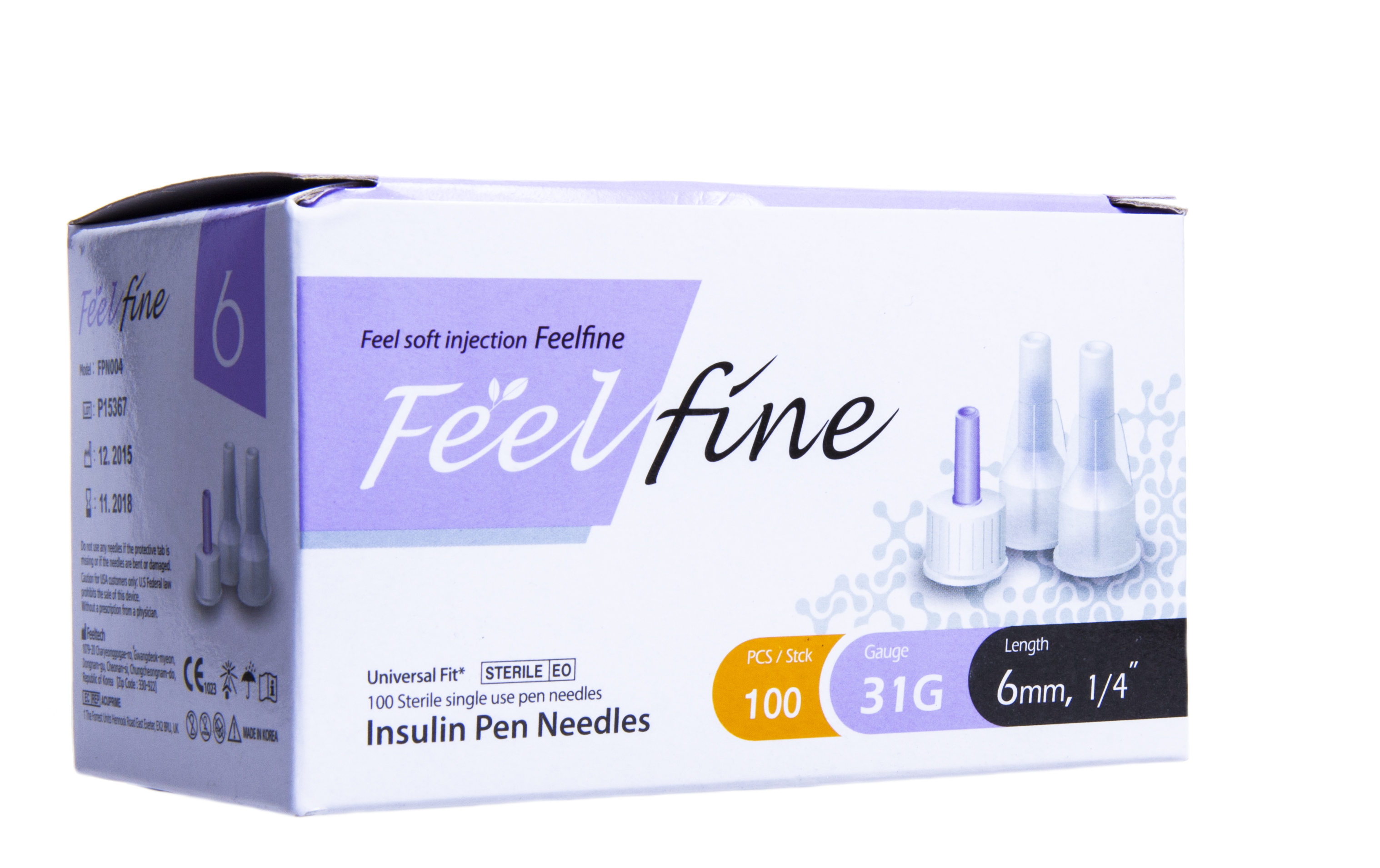 FeelFine insuliini süstevahendi nõelad N100 Nõela pikkus 5mm, paksus 31G. Ühekordseks kasutamiseks. Ära kasuta nõelu, kui kaitsekate on puudu või kui nõelad on kõverad või kahjustunud. Nõel on steriilne, kui kaitsekate on kahjustamata. Peale süstimist eemaldage nõel ja utiliseerige vastavasse konteinerisse. Järgige kohalikke hävitamise eeskirju. Hoida toatemperatuuril ja kuivas, eemal keemilistest ühenditest. Kokkupanemise ja süstimise juhendid on toodud insuliini manust...