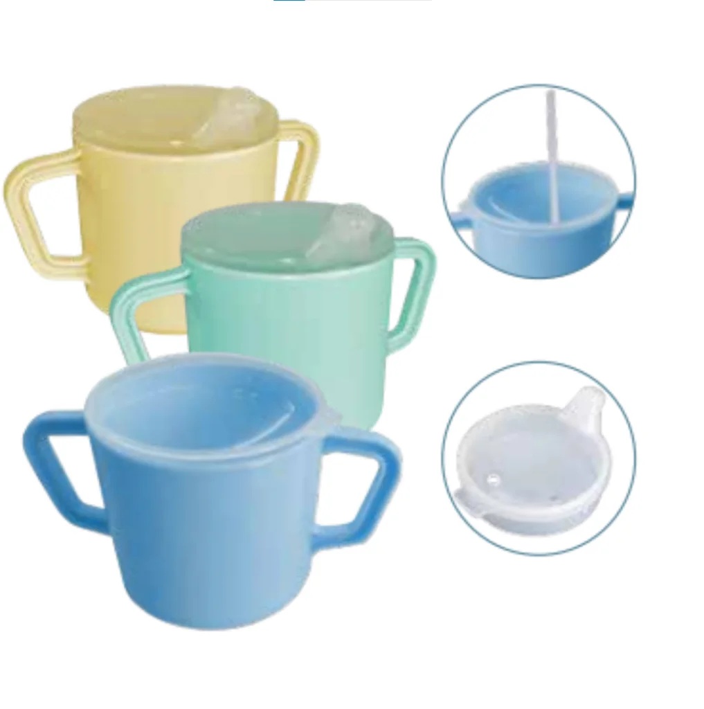 Helesinine plastikust joogitops kahe sanga ja kaanega, millest on mugav juua ja kinni hoida. Topsil kaks vahetatavat kaant: üks tilaga ning teine auguga kõrre jaoks. Mahutavus 200 ml Võib kasutada mikrolaineahjus Võib pesta nõudepesumasinas Autoklaavitav 125°C juures Netokogus 1 tk Tootja Sundo Homecare GmbH Päritoluriik Saksamaa...
