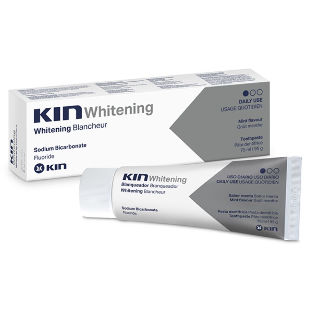 KIN Whitening valgendav hambapasta on igapäevaseks kasutamiseks. Uue põlvkonna valgendav hambapasta, mis valgendab hambaid õrnalt ja järk-järgult, neid keemiliste plekieemaldajatega pleegitamata. Hambapasta toime sarnaneb hammaste soodapesule. KIN Whitening hambapastas olevad aktiivsed toimeained on mikropeened naatriumvesinikkarbonaadi osakesed, mis valgendavad hambaemaili seda kahjustamata. Naatriumpürofosfaat (3,30%) väldib katu ja hambakivi teket ning naatriumfluorii...