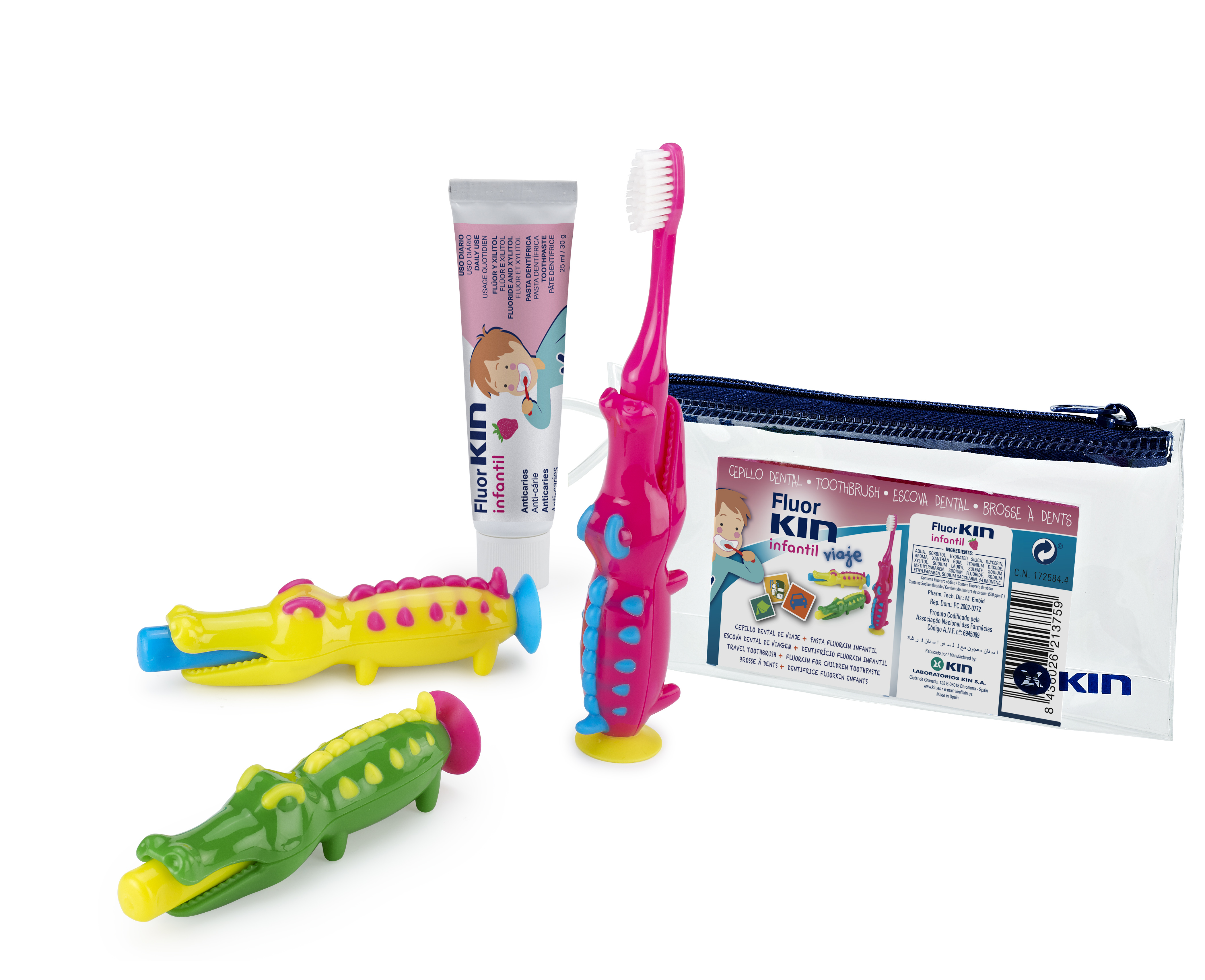 Komplekt "Krokodill" on mõeldud suurematele lastele. Krokodillikujulisel hambaharjal on kolmnurkne ja suurem harjapea. Komplekti kuulub 25 ml FluorKIN lastele hambapasta, mis sobib ideaalselt laste igapäevaseks suuhügieeniks. Igapäevane hammaste harjamine juba väikesest peale aitab lastel oma suu tervise eest hoolt kanda. Seetõttu on oluline alates esimeste hammaste lõikumisest, omandada suuhügieeni rutiinid, et ennetada hambahaigusi. Hambapasta koostises on naatriumfluo...