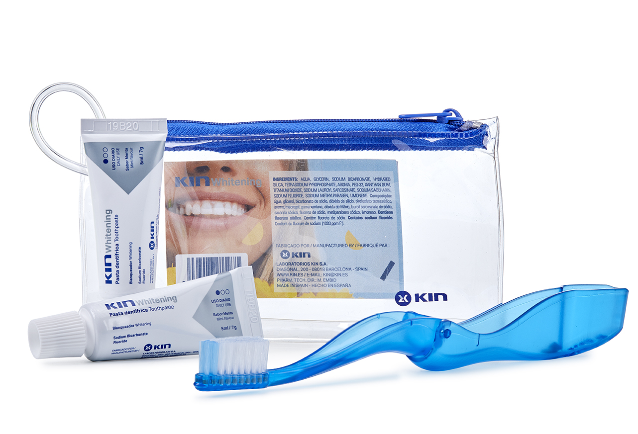 Mugavas lukuga kotis on volditav kvaliteetne hambahari ja 2 x 5ml KIN Whitening hambapastat. KIN Whitening hambapastas olevad aktiivsed toimeained on mikropeened naatriumvesinikkarbonaadi osakesed, mis valgendavad hambaemaili seda kahjustamata. Naatriumpürofosfaat väldib katu ja hambakivi teket ning naatriumfluoriid, mis kaitseb kaariese eest. Hambapasta koostises on kristalne naatriumvesinikkarbonaat e. söögisooda (sodium bicarbonate) mikropulber, mis on pehmem kui hamb...