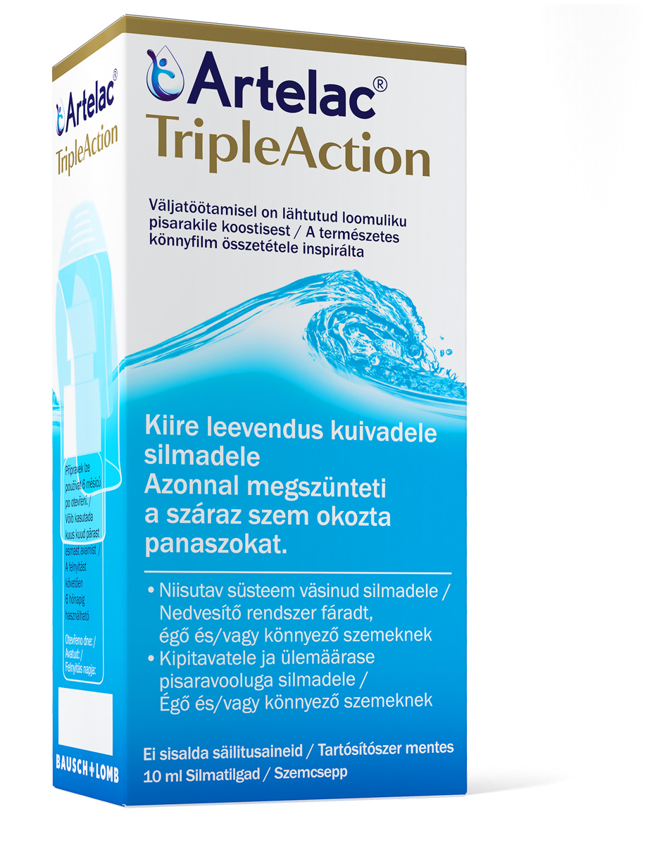 Artelac TripleAction on niisutav süsteem, mis jälgib loomulikku pisarakile koostist. See sisaldab looduslikku niisutajat hüaluroonhapet ja lisaniisutajaid glütserooli, karbomeeri ja ka täiendavat lipiidkomponenti. Sobib kasutada erinevate kuivsilmsuse vormide korral (väsinud, stressis silmad, puru-, kipitustunne silmas või pisaravool) sest hooldab pisarakile kõiki kolme kihti (lipiidi-, vee- ja mutsiinikihti), parandades kuivsilmsuse korral silmapinna niiskussisaldust...