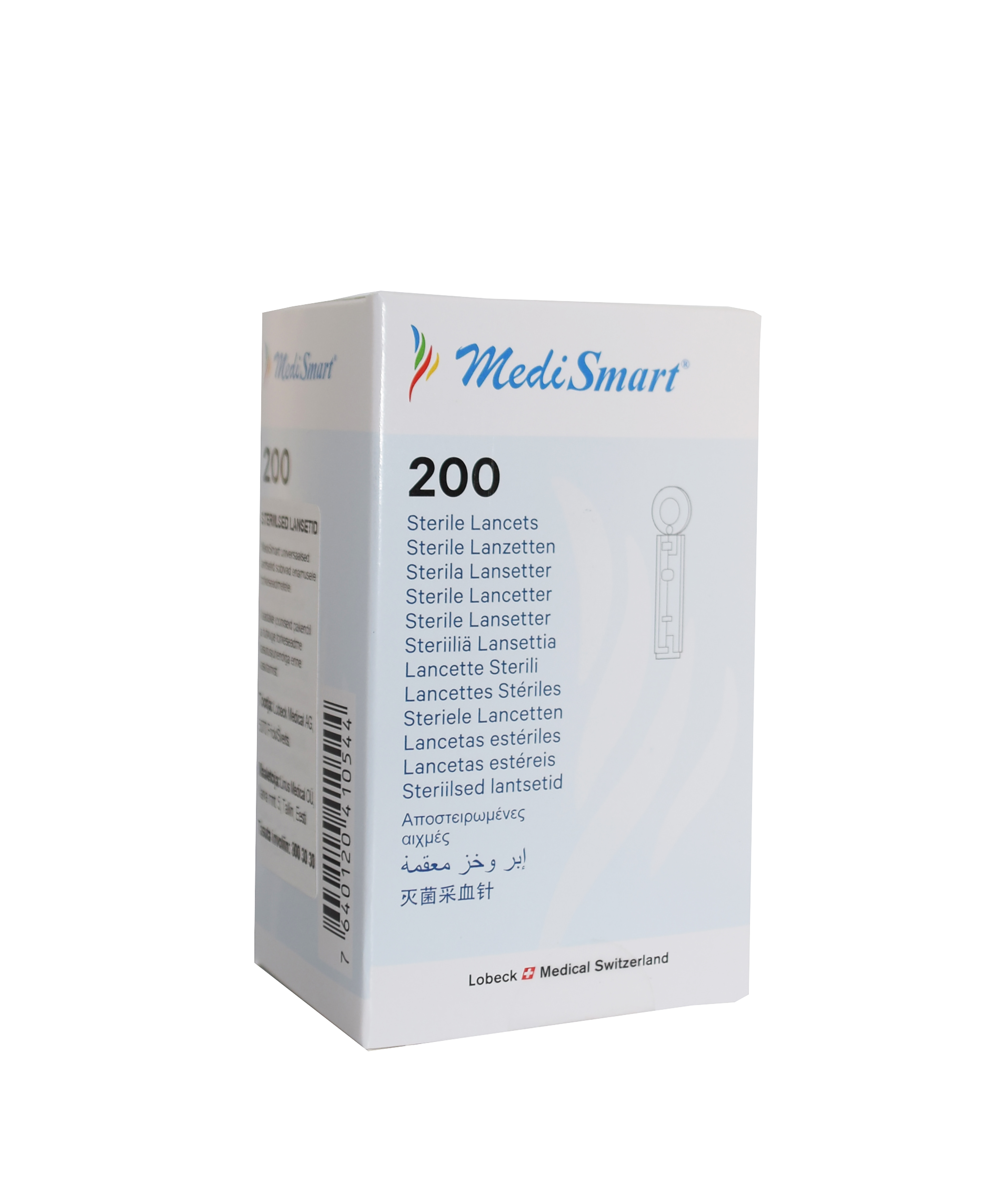 MediSmart universaalsed lansetid sobivad enamusele torkeseadmetele. Kasutamisjuhised Vaadake jooniseid pakendil ja tutvuge torkeseadme kasutusjuhendiga enne kasutamist. Ära kasuta, kui turvakate on vigastatud. Ainult ühekordseks kasutamiseks. Hoiatused ja ettevaatusabinõud Ära kasuta, kui turvakate on vigastatud. Ainult ühekordseks kasutamiseks. Seadme ja pakendi sisu Steriilsed lantsetid, 200 tk karbis. Tootja või tootja volitatud esindaja Tootja: Lobeck Medical AG, 507...