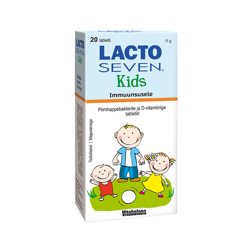 Tootetutvustus Toidulisand magusainega. LACTO SEVEN närimistabletid sisaldavad seitset erinevat külmkuivatatud looduslikku piimhappebakteri tüve (sealhulgas Lactobacillus ja Bifidobacterium tüved) ja D3-vitamiini, mis toetab immuunsüsteemi normaalset talitlust. Tootmise käigus kaitstakse piimhappebakterid spetsiaalset Bio-SupportTM tehnoloogiat kasutades peptiid-polüsahhariidkompleksiga mis tagab bakterite elujõulisuse tootmisprotsessi ajal, toote säilitamisel ja mao happelise keskkonna läbimise...