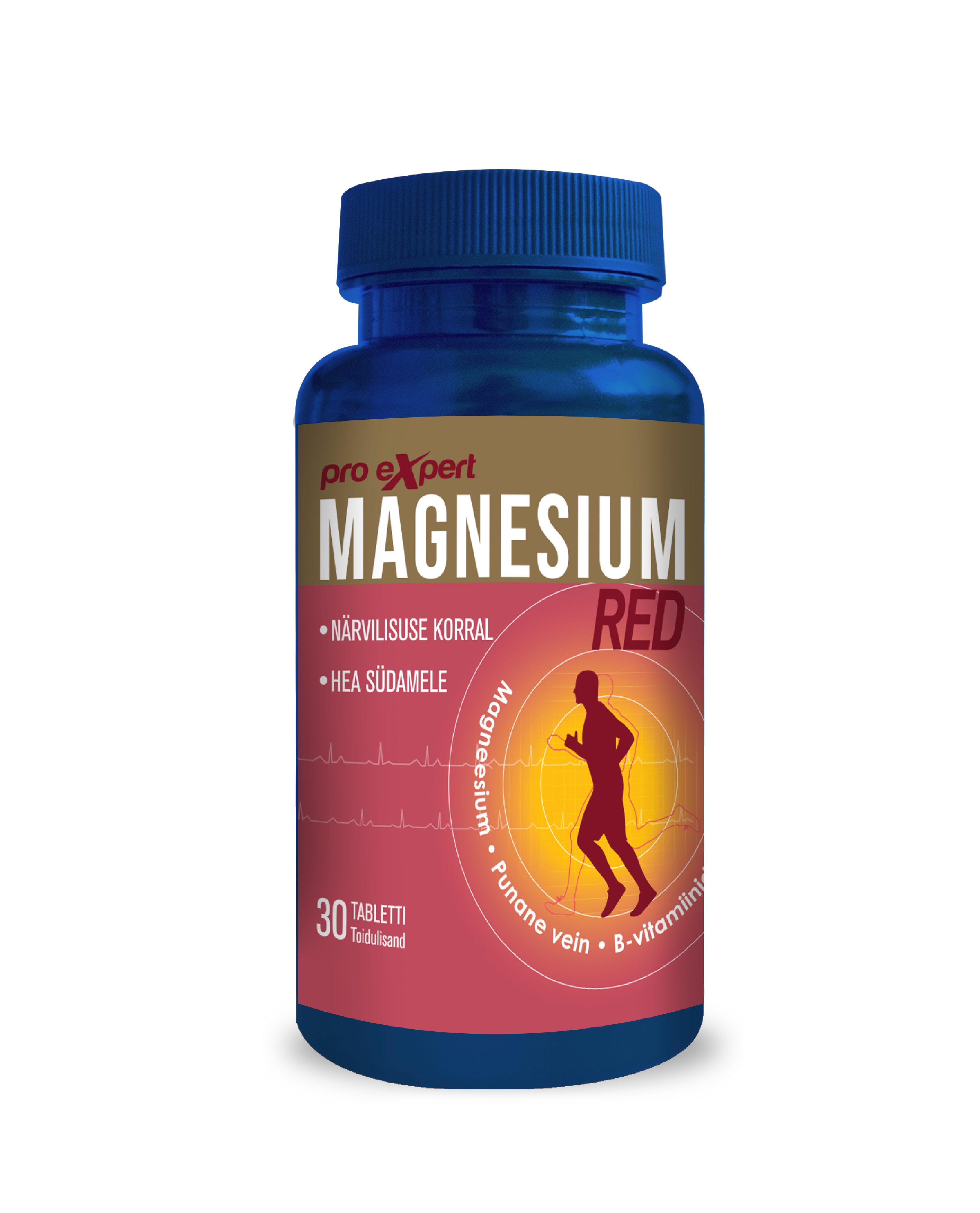 Tootetutvustus Magnesium Pro Expert RED on spetsiaalne toidulisand vaimse stressi korral südame-veresoonkonna toetatamiseks magneesiumi, B-grupi vitamiinide ning punase veini esktraktiga. Magneesium aitab kaasa lihaste (sh südamelihase) tööle. Närvisüsteemi normaalset talitlust toetavad B1, B6 ja B12 vitamiinid. Standardiseeritud punase veini ekstrakt sisaldab kvaliteetsele punasele veinile iseloomulike antioksüdante, mis toetavad normaalset vereringet. Päevaseks tarbimiseks soovitatav kogus nin...