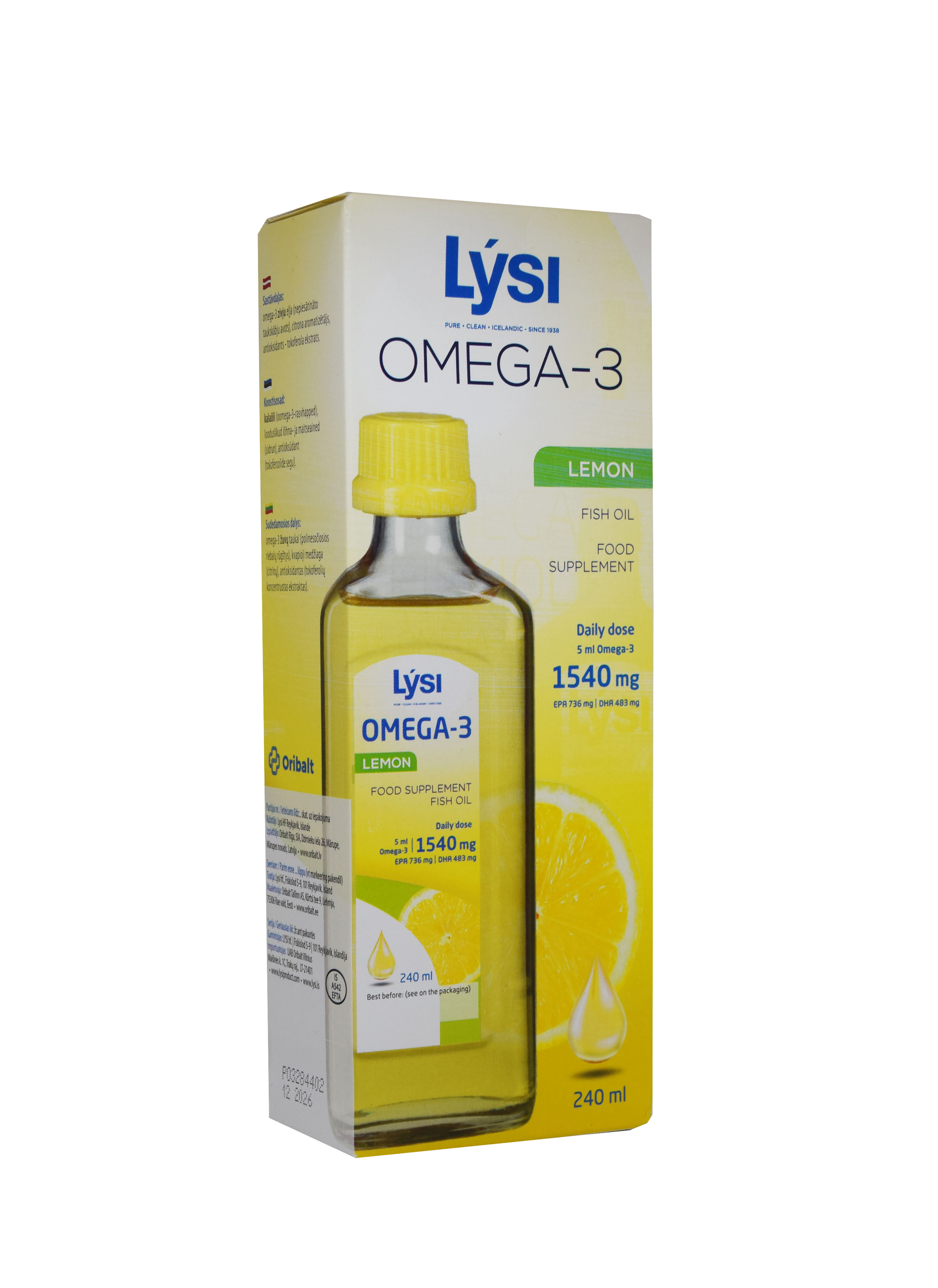 Tootetutvustus Lysi sidrunimaitseline kalamaksaõli sisaldab D3-, A- ja E-vitamiini. Lisaks polüküllastumata EPA- ja DHA-rasvhappeid, mis aitavad kaasa normaalsele südametalitlusele. EPA ja DHA kasulik toime avaldub siis, kui neid tarbitakse päevas vähemalt 250 mg. Valmistatud Islandi puhaste ja külmade vete kaladest! Päevaseks tarbimiseks soovitatav kogus ning tarvitamisjuhised Soovituslik päevane annus on 5 ml. Sisaldus päevase annuse kohta Päevane annus (5 ml) sisaldab: Oomega-3-rasvhapped: 10...