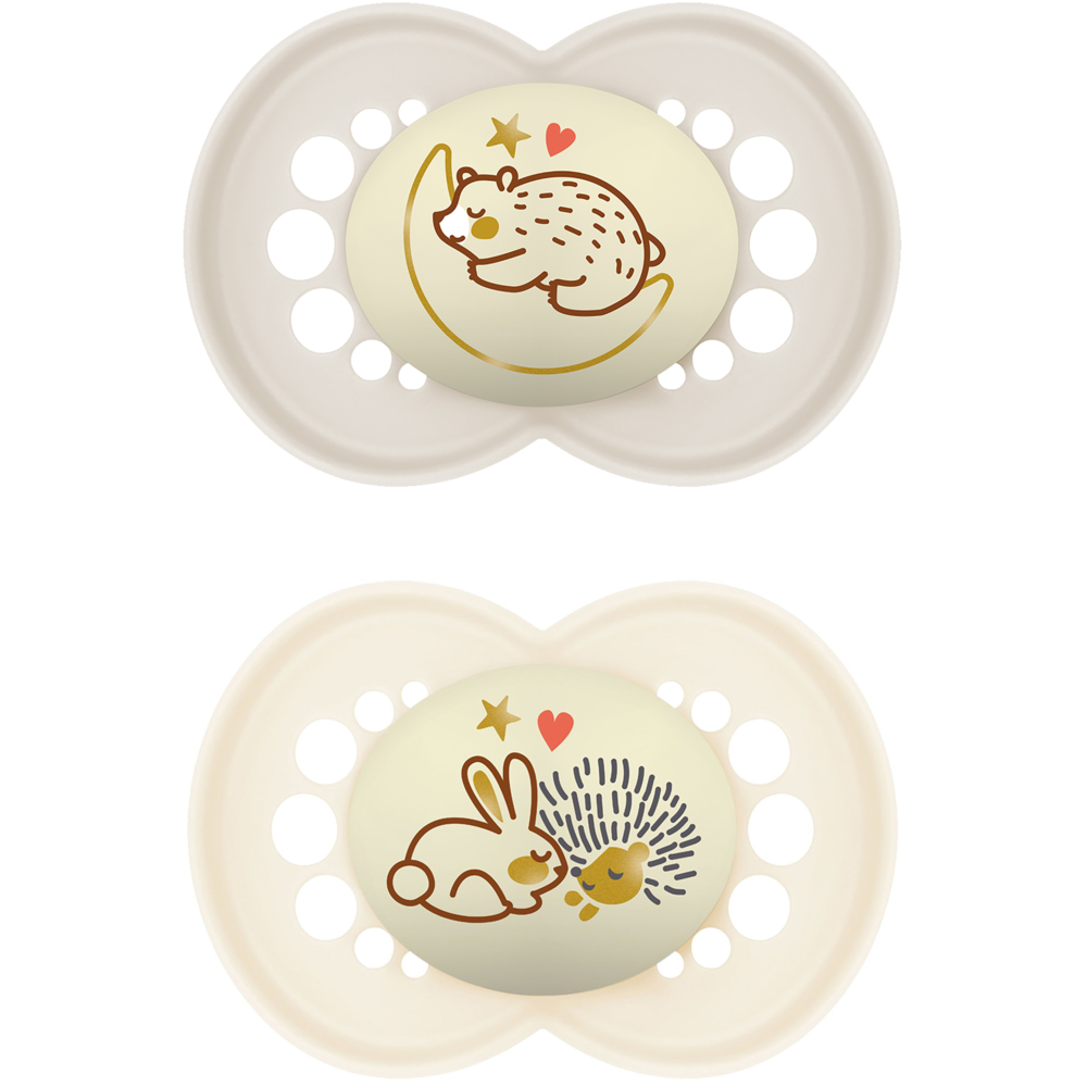 MAM Helendav silikoonlutt vanusele 6-16 elukuud. Värvus: NEUTRAL. Sümmeetrilise kujuga, ortodontilised silikoonlutid. Pimeduses helendav MAM ortodontiline lutt on ideaalne imiku lõua ja hammaste arengule. MAM SkinSoft silikoon on suus väga mugav ja pehme. Suured avad ja kühmud tagavad õhu ringvoolu. BPA ja BPS vaba. Helendav lutiplaat aitab lutti kergesti leida ka pimeduses. MAM lutid on valminud koostöös lastearstide, hambaarstide ja ortodontidega. Kasutamisjuhised Sili...