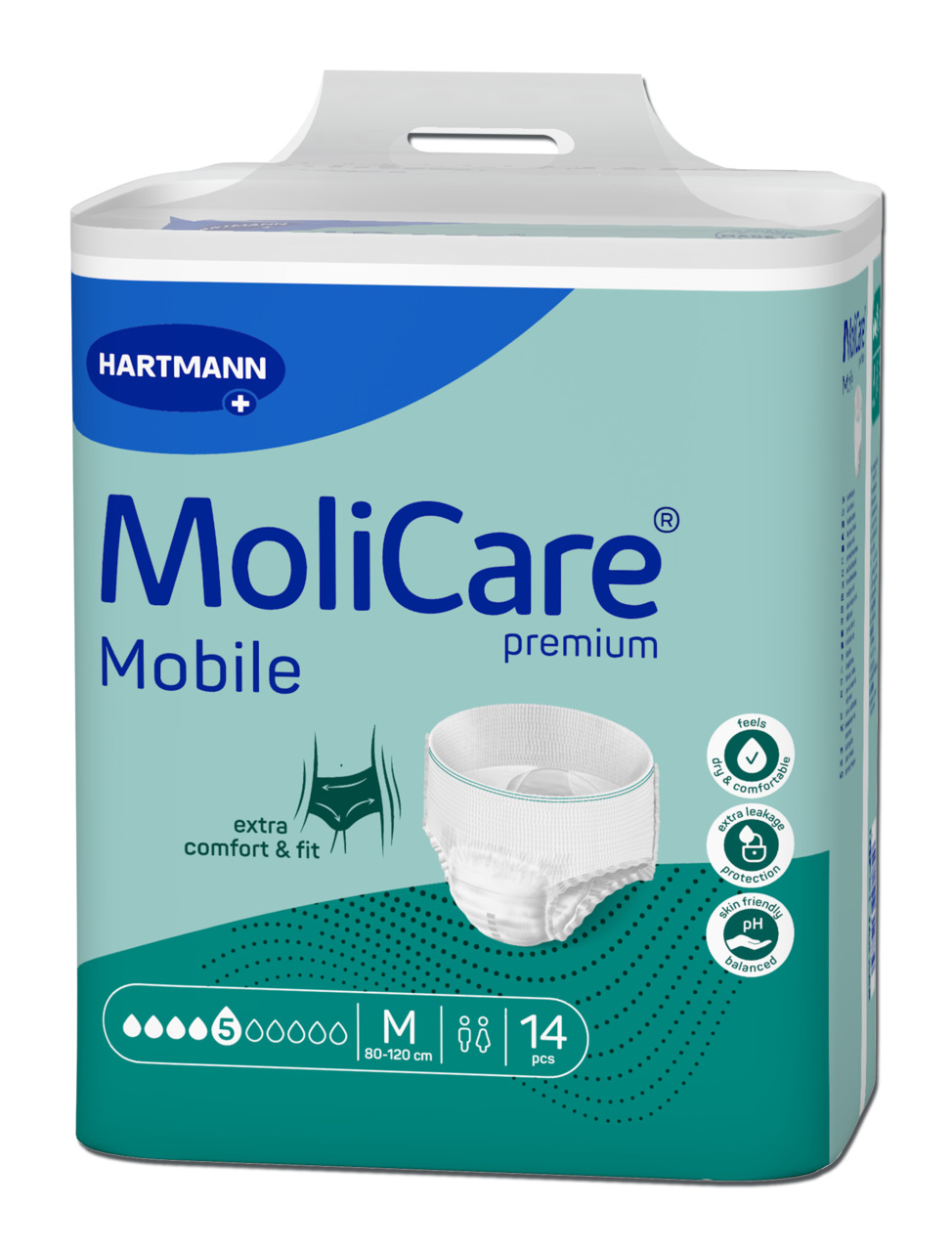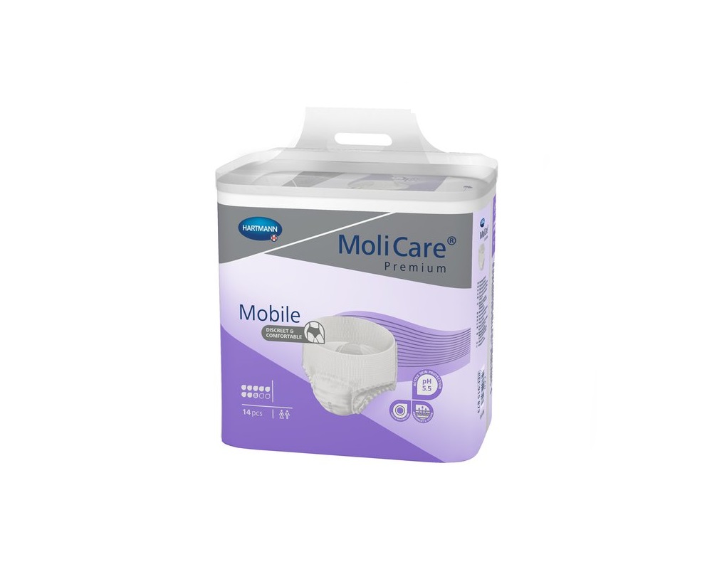 Imavad püksid ümbermõõdule 130 - 170 cm. Sobivad nii naistele kui ka meestele väga raske uriinipidamatuse korral. Pehmest õhku läbilaskvast materjalist välispind. Nahasõbralik vedelikku jaotav imava padja pealiskiht. Lõhnaneutraliseerijat sisaldav kolmekihiline imav osa. Sisemised lekkekindlad barjäärid. Niiskuse indikaator: kui mähkme välisküljel olev märgistus hajub, on aeg mähet vahetada. Kasutamisjuhised Molicare mobile imavaid pükse kasutada nagu tavalist aluspesu. ...