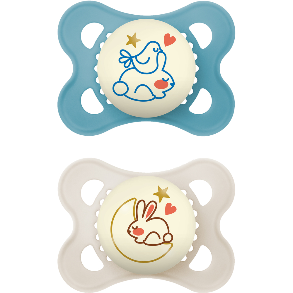 MAM Helendav silikoonlutt vanusele 0-6 elukuud. Värvus: NEUTRAL. Sümmeetrilise kujuga, ortodontilised silikoonlutid. Pimeduses helendav MAM ortodontiline lutt on ideaalne imiku lõua ja hammaste arengule. MAM SkinSoft silikoon on suus väga mugav ja pehme. Suured avad ja kühmud tagavad õhu ringvoolu. BPA ja BPS vaba. Helendav lutiplaat aitab lutti kergesti leida ka pimeduses. MAM lutid on valminud koostöös lastearstide, hambaarstide ja ortodontidega. Kasutamisjuhised Silik...