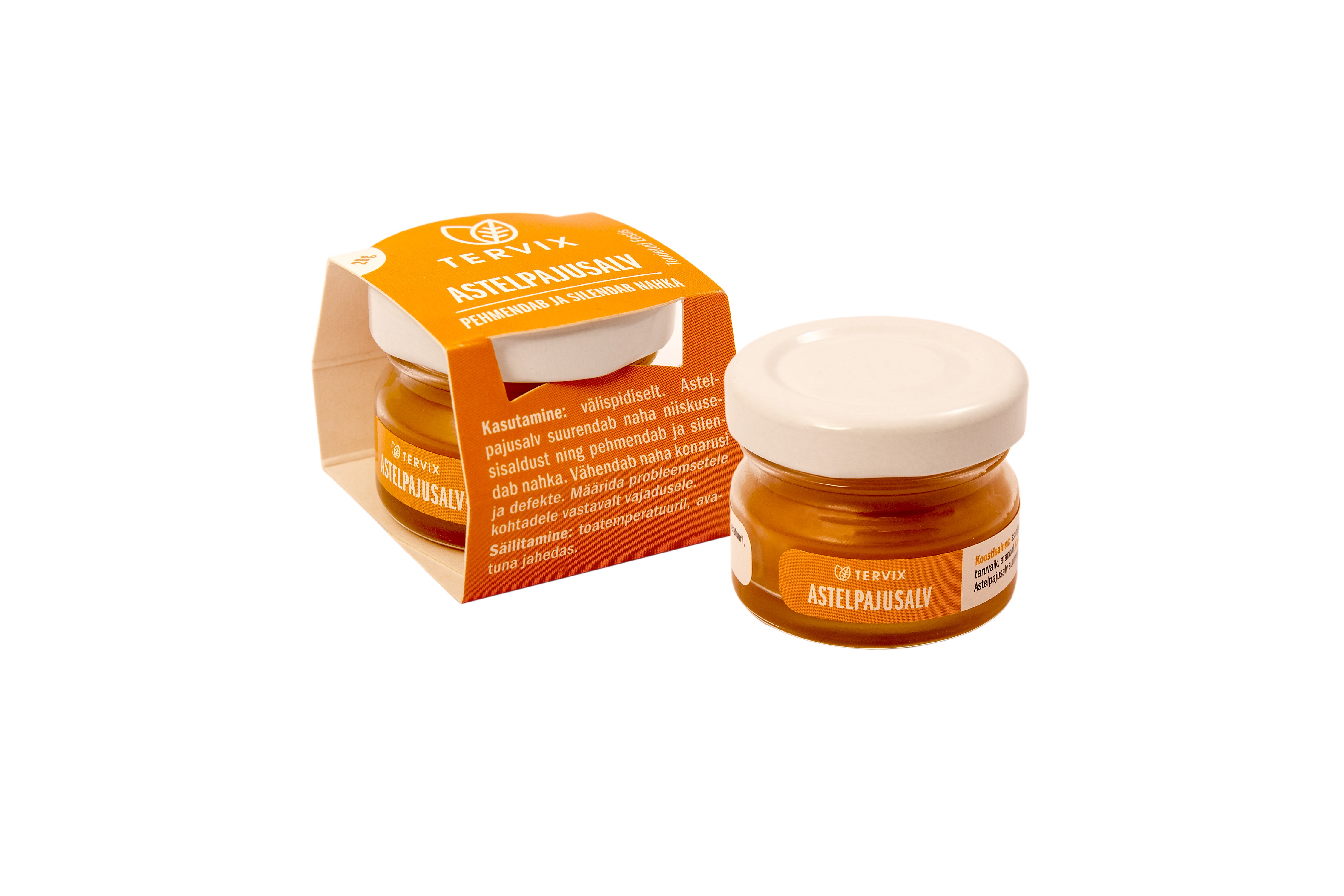 100% looduslik, ei sisalda sünteetilisi aineid! Astelpajusalv põhineb astelpajuõlil, millele on lisatud mesilasvaha ja taruvaigutinktuuri. Astelpajusalv suurendab naha niiskusesisaldust ning pehmendab ja silendab nahka. Vähendab naha konarusi ja defekte. Toode ei sisalda sünteetilisi aineid. Kasutamisjuhised Välispidine. Määrida õhukese kihina probleemsetele kohtadele. Koostisosade loetelu (Ingredients) Brassica Napus seed oil, Beeswax, Hippophae Rhamnoides Fruit Extract...