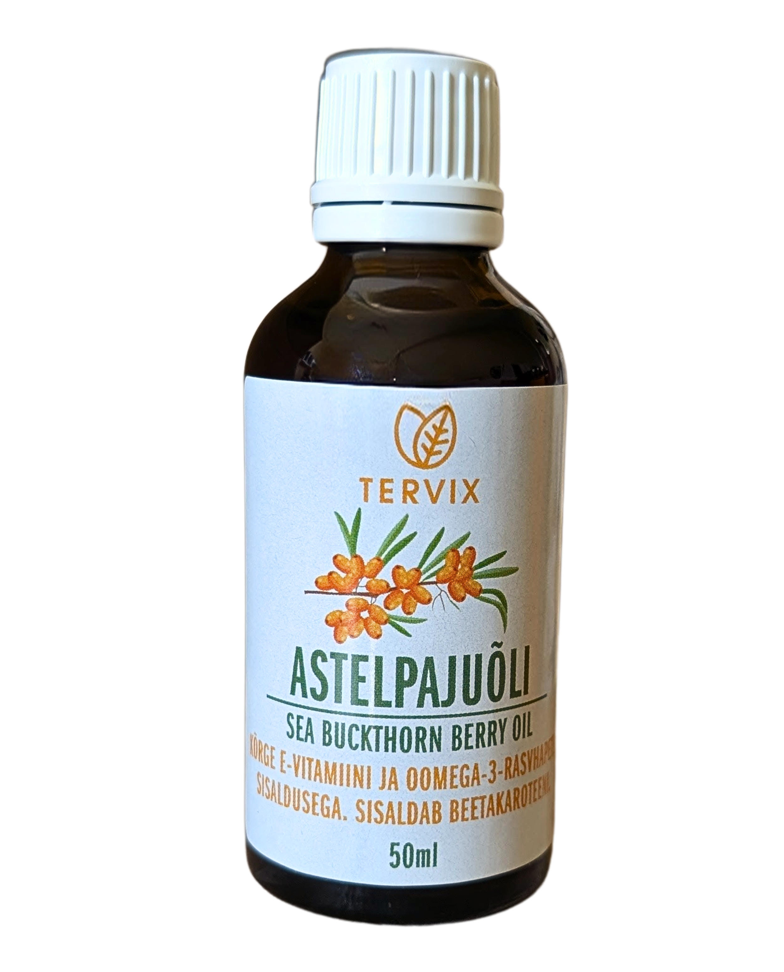 Tootetutvustus Kõrge E-vitamiini ja oomega-3-rasvhapete sisaldusega astelpajumarja kestadest rapsiõliga ekstraheeritud õli. Sisaldab beetakaroteeni. Lisaainetevaba. 50 ml. Päevaseks tarbimiseks soovitatav kogus ning tarvitamisjuhised Seespidiselt 2spl kolm korda päevas enne sööki. Sobib ka toidu valmistamiseks. Toitumisalane teave Toitumisalane teave (100ml): Energiasisaldus 3221kJ/783kcal (39% päevasest võrdluskogusest) Rasvad, sh: 87,0 g (124%) Küllastunud rasvhapped 7g (35%) Polüküllastumata ...