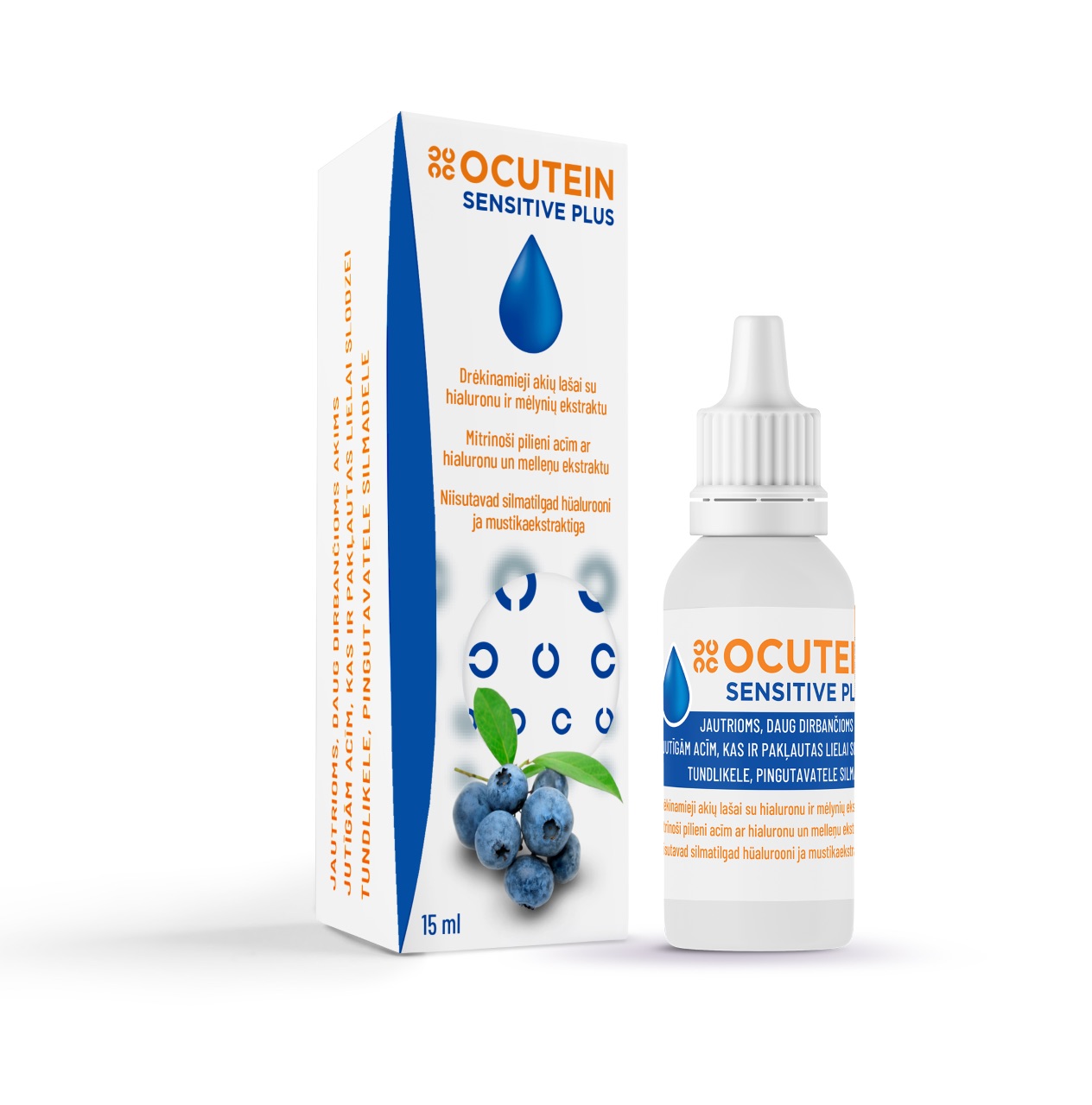 Niisutavad silmatilgad hüalurooni ja mustikaekstraktiga. - Niisutab. - Aitab vähendada ärritust. - Toetab silmade taastumist. - Sobib kontaktläätsede kandmisel. Ocutein Sensitive Plus sisaldab hüaluroonhapet. Hüaluroonhape on keha loomulik komponent. Vee imendumise tõttu taastab hüaluroonhape pisarakilet, muudab selle stabiilseks ja terviklikuks. Ocutein Sensitive Plus on ideaalne: - kui tunnete silmas tuule, tolmu ja päikesevalguse mõju; - kui silmades on ärritustunne, ...