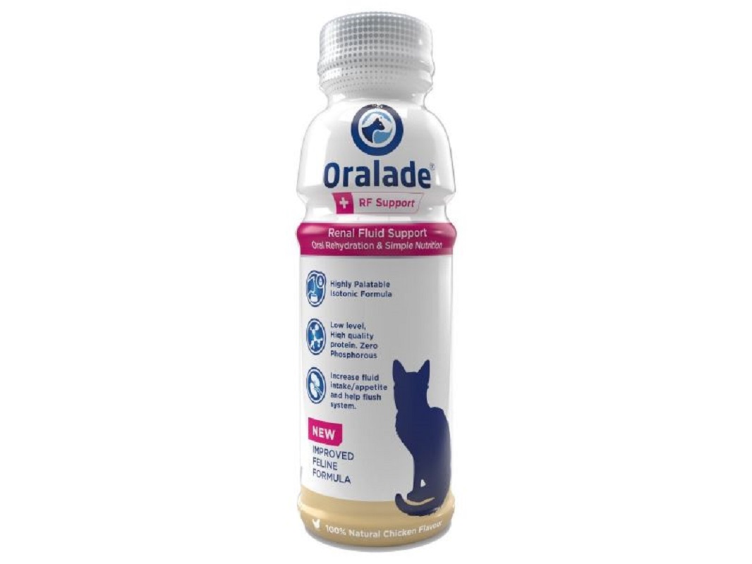 Oralade RF Support. Dieetsööt (täiendsööt) kassidele. Väga hea maitsega suukaudne kasutusvalmis isotooniline rehüdreeriv ja toitev lahus kassidele. Sisaldab vajalikke elektrolüüte, kergesti seeduvaid suhkruid ja aminohappeid. Stimuleerib vedelikutarbimist. Sobib ka diabeetikutele ja allergilistele kassidele. Kasutamine. Enteraalne toitmine: 0,25 – 0,5 ml/kg/h suurendades kogust 50% iga 4 h järel. Suukaudne: 0,2 kg – 3 kg kaaluvad kassipojad ja kassid 50 ml/kg (ööpäevane kogus 10-150 ml), 3-5 kg ...