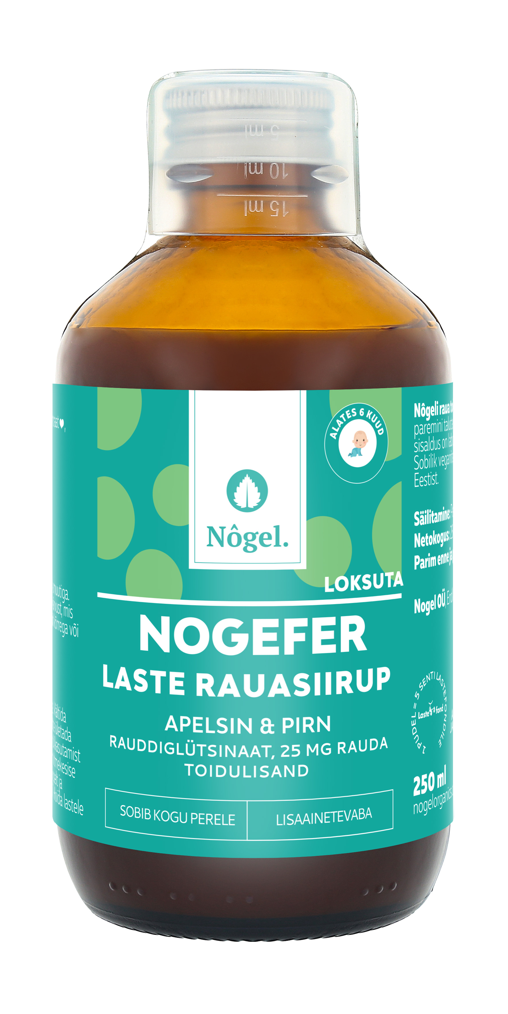 Tootetutvustus Nôgeli laste rauasiirup sobib alates 6-ndast elukuust kogu perele. Nôgeli raua toidulisandis on raud hästi omastatavas ja paremini talutavamas rauddiglütsinaadi vormis. Iga partii raua sisaldus on laboris kontrollitud. Kontrollitud gluteenivaba. Sobib ka veganitele. Toode on välja arendatud ja toodetud Eestis. Koos Nôgeliga panustad ka heategevusse. Iga ostetud toote kohta annetame Tartu Ülikooli Lastefondile 5 senti. Päevaseks tarbimiseks soovitatav kogus ning tarvitamisjuhised P...