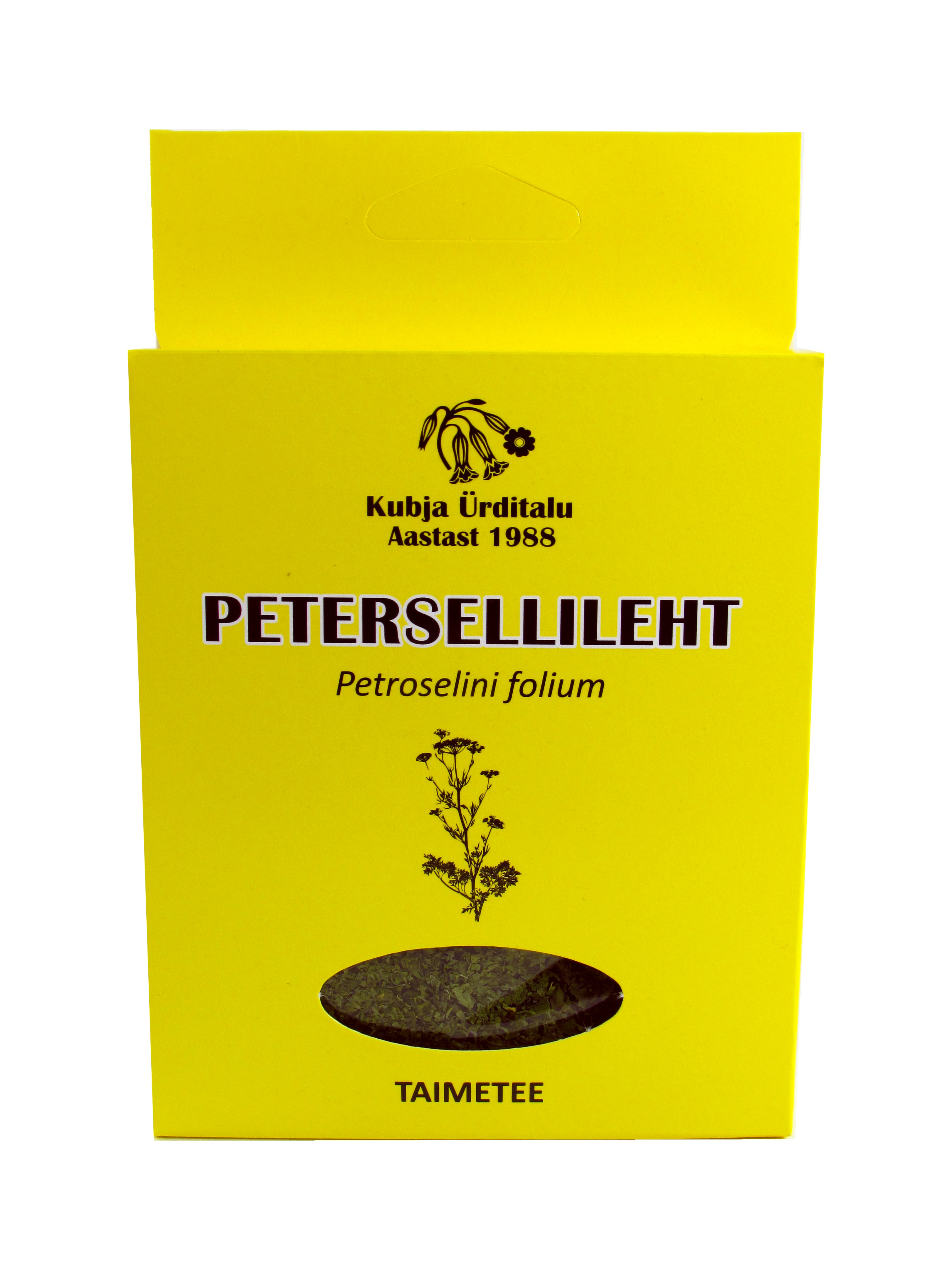 Tootetutvustus Peterselliteel on uriiniesitust suurendav ja jääkainete eritumist soodustav toime. Korrastab menstruatsiooni. Tee valmistamine ja kasutamine: Võta 1 sl lehti klaasi keeva vee kohta, lase 10 minutit tõmmata, kurna. Joo1/3 klaasitäit enne sööki. Netokogus: 15±2 g Valmistaja: Kubja Ürditalu, Eesti Koostisosade loetelu (allergiat või talumatust põhjustav koostisosa või abiaine märgitud TRÜKITÄHTEDES) Petersellileht Hoiatused Petersellitee on vastunäidustatud ägeda neerupõletiku ja ras...