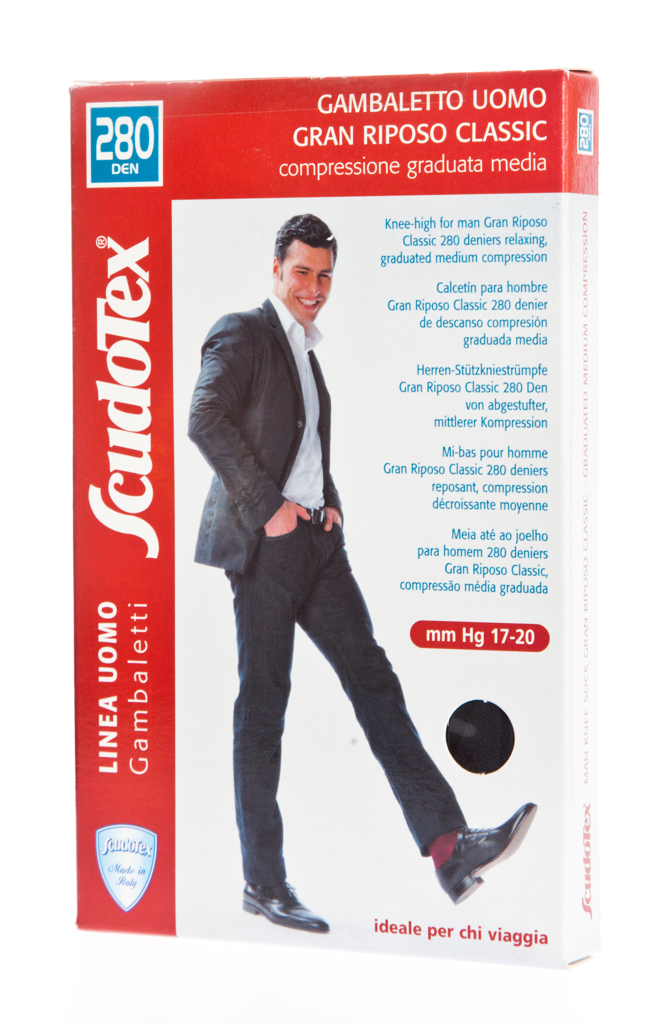 Põlvikud keskmise kuni tugeva rõhuga 19-22 mmHg, 140DEN. Kantakse venoosse puudulikkuse korral, kui on soodumus veenilaiendite ja turse tekkeks, samuti pindmise veenipõletiku korral aja operatsioonijärgseks ajaks. Sobivad hästi pikka istumist ja seismist nõudva tööviisi korral. ScudoTex rõhuga tugisukad soodustavad tänu astmelisele rõhujaotusele venoosset vereringet ja lümfiringet, hoides ära tursed ja vere kogunemise jalaveenidesse ning vähendavad veenitromboosi tekke r...