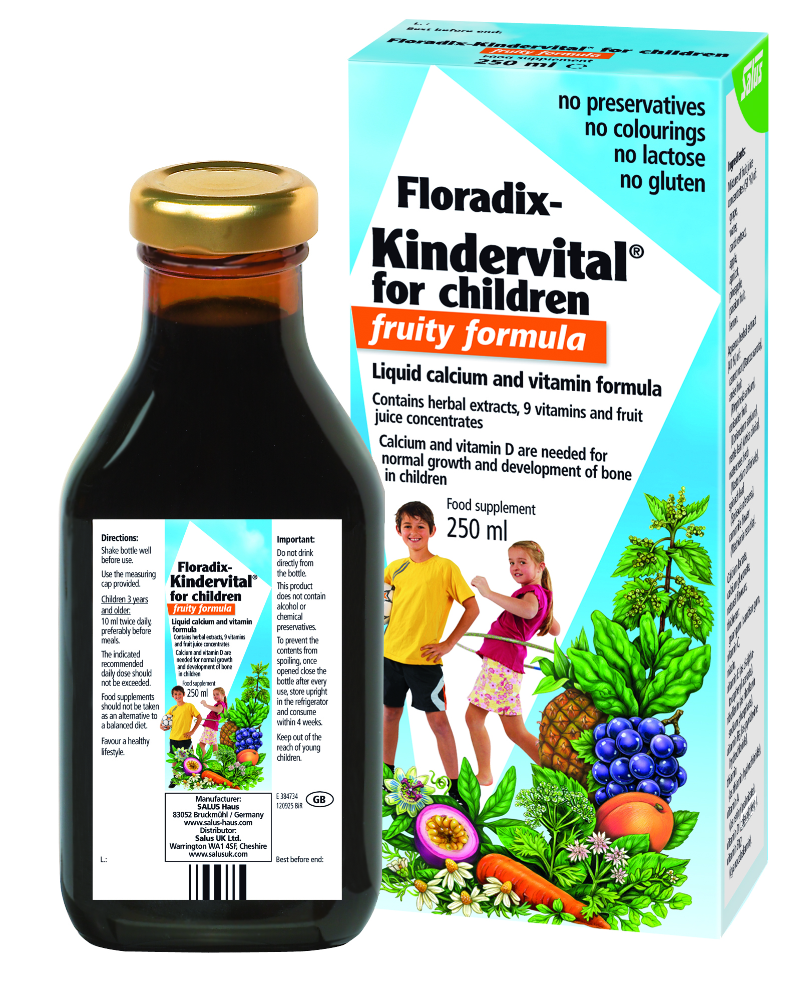Tootetutvustus Puuviljamaitseline Floradix Kindervital on eelkõige lastele mõeldud maitsev toidulisand. Sisaldab D-vitamiini ja kaltsiumi, mis aitavad hoida luid normaalsetena. Lisaks A-, C-, D-, B6- ja B12-vitamiini, mis aitavad kaasa immuunsüsteemi normaalsele talitlusele. Tähtis on mitmekülgne ja tasakaalustatud toitumine ning tervislik eluviis. Ei sisalda alkoholi, säilitusaineid, värvaineid ega tehislikke lõhna- ja maitseained. Laktoosi- ja gluteenivaba ning sobilik ka taimetoitlastele. Päe...