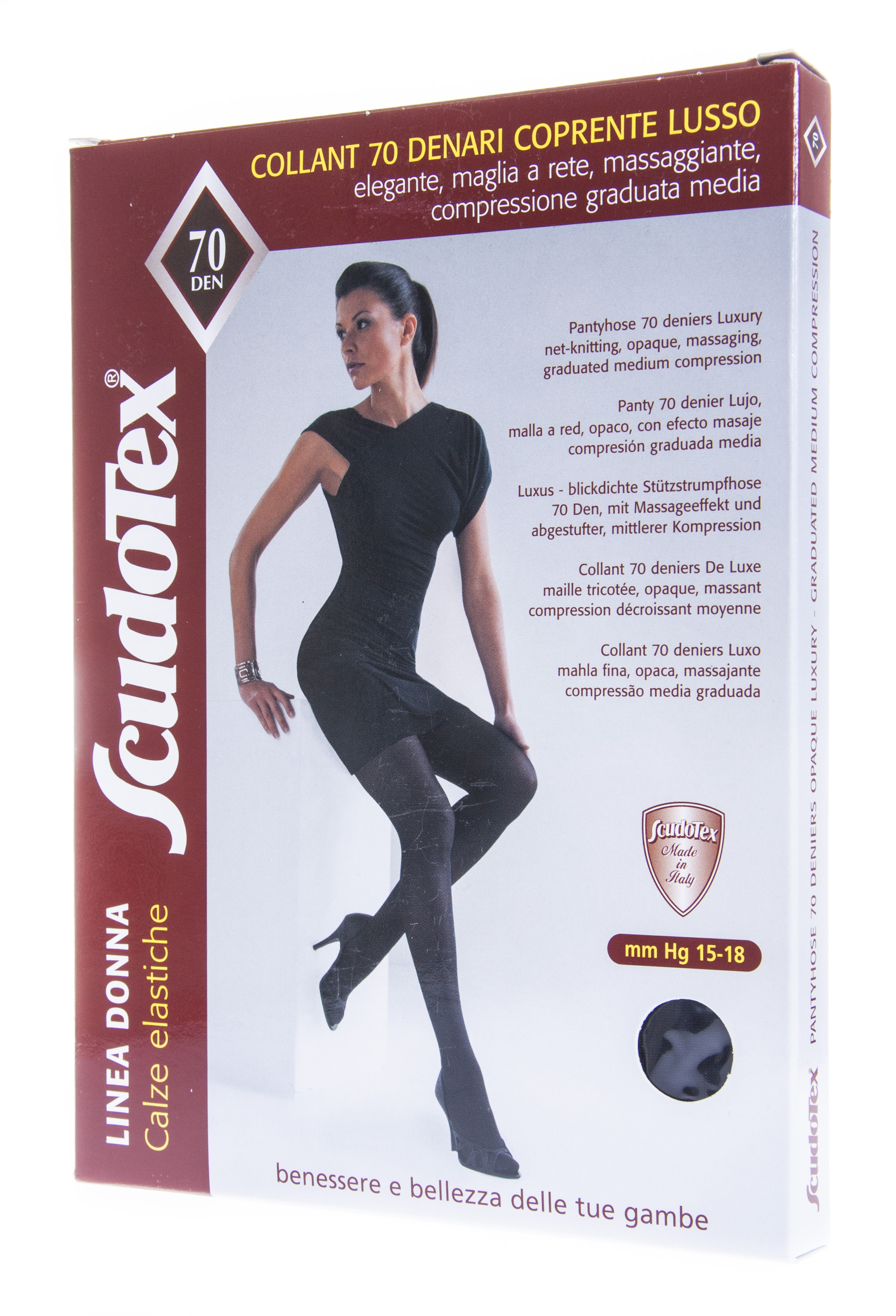 Sukkpüksid keskmise kuni tugeva rõhuga 19-22 mmHg, 140DEN. Kantakse venoosse puudulikkuse korral, kui on soodumus veenilaiendite ja turse tekkeks, samuti pindmise veenipõletiku korral aja operatsioonijärgseks ajaks. Sobivad hästi pikka istumist ja seismist nõudva tööviisi korral. Vahetükk alates II suurusest. ScudoTex rõhuga tugisukad soodustavad tänu astmelisele rõhujaotusele venoosset vereringet ja lümfiringet, hoides ära tursed ja vere kogunemise jalaveenidesse ning v...