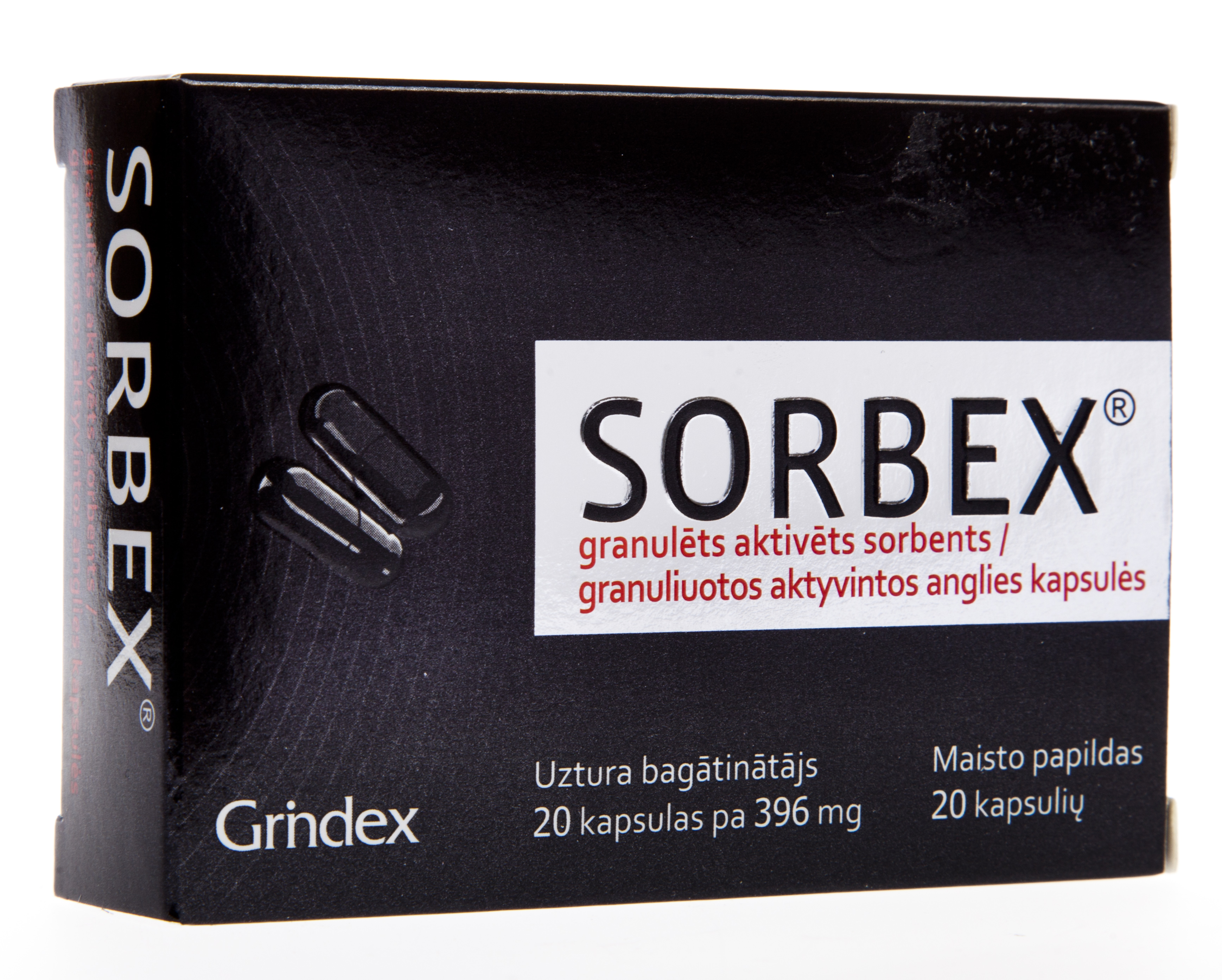 Tootetutvustus SORBEX® - granuleeritud aktiivsüsi.Kapsel. 20 kapslit pakendis Sorbex® kapslis on 0,2 - 0,63 mm läbimõõduga aktiivsöe graanulid. Võrreldes tavalise aktiivsöega, mis on toodetud hästi peenestatud pulbrist (osakeste suurus väiksem, kui 0,2 mm), omab Sorbex® tänu graanulite suuremale absorbeerimispinnale tugevamat ja kestvamat toimet. Kapslivorm võimaldab toote lihtsat manustamist. Sorbex® vastab kõigile kaasaegsetele absorbentidele esitatavatele nõuetele: kõrge efektiivsus, kiire to...