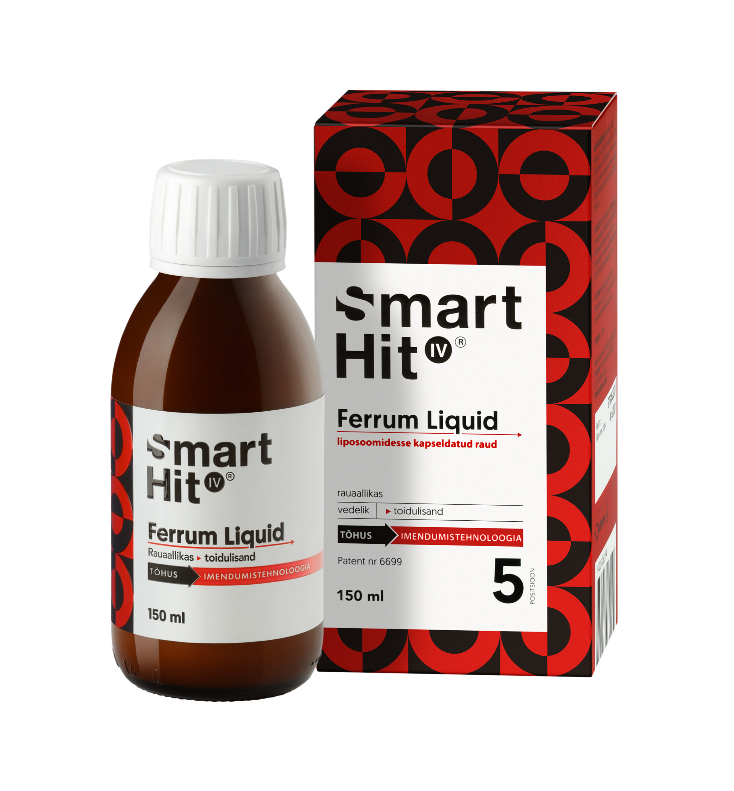Tootetutvustus SmartHit IV® Ferrum on raud, mis on mikrokapseldatud liposoomidesse tõhusa Miosol® imendumistehnoloogia abil. TEADUSLIKES UURINGUTES on liposoomidesse kapseldatud raua puhul tuvastatud mitu korda tõhusam raua imendumine. • toidulisand • liposoomidesse kapseldatud raud • rauaallikas RAUD aitab kaasa hemoglobiini normaalsele moodustumisele ja hapniku normaalsele transpordile kehas. RAUD ja VITAMIINID B6 ja B12 aitavad kaasa vere punaliblede normaalsele moodustumisele. RAUD, VITAMIIN...