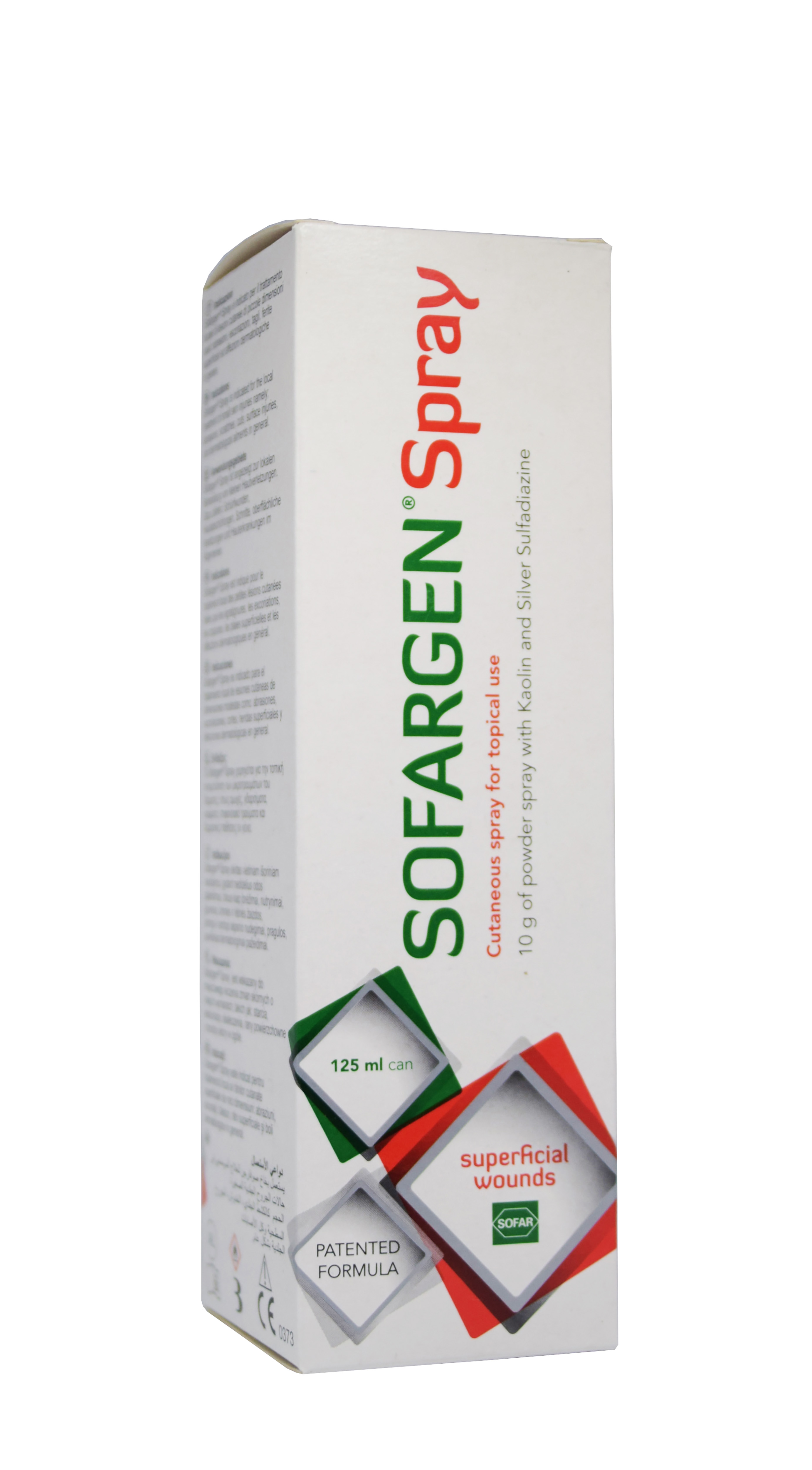 Sofargen spray on välispidiseks paikseks kasutamiseks ette nähtud pulbripihusti, mille koostises on kerget kaoliini ning hõbe-sulfadiasiini. Kaitstes vigastatud nahka, kuivatades ning absorbeerides põletikust tekkinud vedelikku tekitab kerge kaoliin mehhaanilise barjääri välistingimuste toime eest. Hõbe-sulfadiasiin, orgaaniline metalliühend, mis on saadud hõbenitraadi ja sulfadiasiini reaktsiooni käigus, kaitseb haava bakteriaalse saastumise eest ja tagab haava keskkonn...