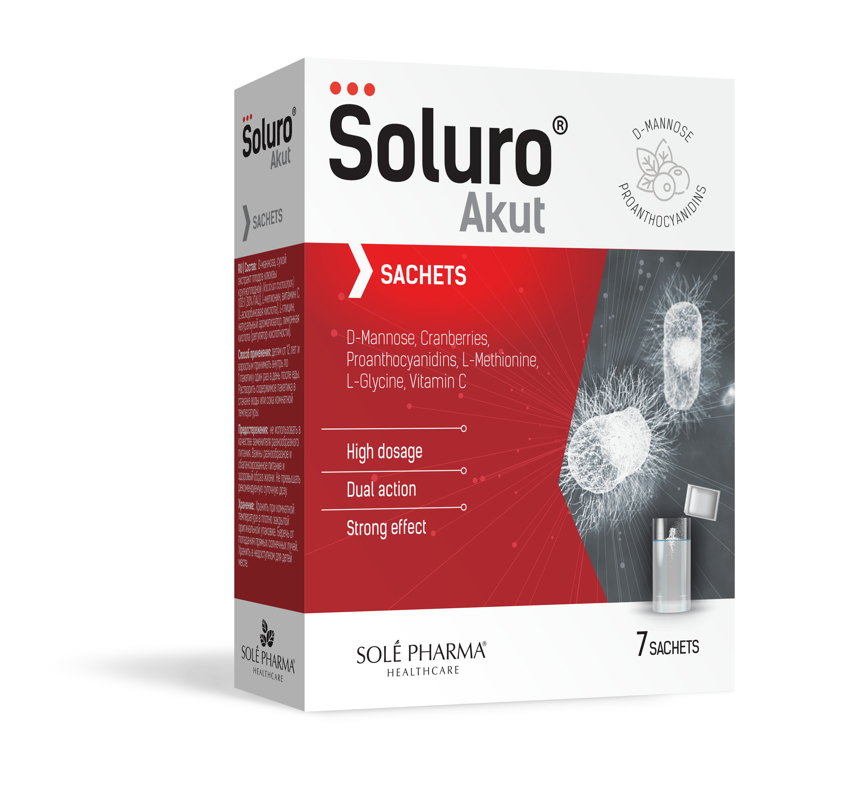 Tootetutvustus Toidulisand põiele ja kuseteedele. Soluro Akut on kompleks, mis sisaldab suures annuses D-mannoosi, proantotsüanidiine, aminohappeid ja vitamiini C. Vitamiin C aitab kaasa immuunsüsteemi normaalsele talitlusele. Soluro Akut võib kasutada koos antibiootikumidega. Täiendava info saamiseks D-mannoosi ja proantotsüanidiinide mõju kohta organismile, võtke palun ühendust oma günekoloogi või uroloogiga. Päevaseks tarbimiseks soovitatav kogus ning tarvitamisjuhised Kasutamine: lastele ala...