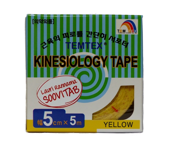 Kinesioteip on kangast ja akrüülliimist veniv teip, mida kasutatakse taastusravis ja spordimeditsiinis. Kinesioteip on väga paljude kasutusvõimalustega: fikseerib ja stabiliseerib, kiirendab keha verevoolutuse, lümfi ja ainevahetuse protsesse, säilitab paigaldamisel keha normaalse dünaamilise liikuvuse. Kasutamine: Mitte hoida nahal üle 5 päeva. Teip tuleb nahalt eemaldada ettevaatlikult. Mõõdud: 5m x 5cm. Värv: kollane. Päritoluriik: Korea. Maaletooja: OÜ Borealis Holdi...