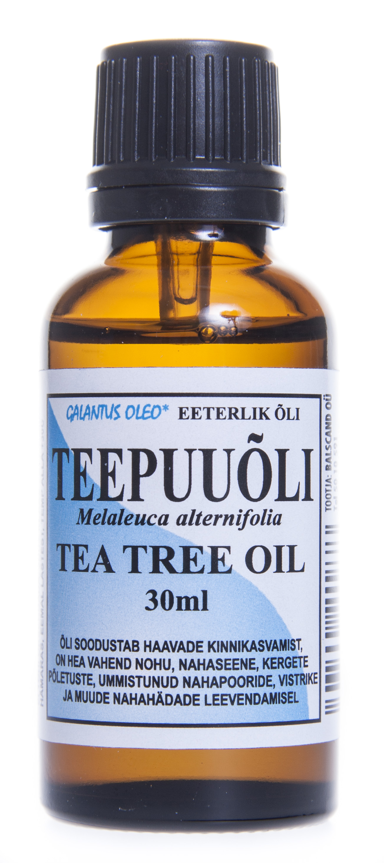 Teepuuõli (Melaleuca alternifolia) Toodetakse destilleerimismeetodil. Värvitu või kahvatukollane. Seguneb hästi lavendli, salvei, rosmariini, männi, kananga, geraaniumi, majoraani, nelgi, muskaadi jm õlidega. On teaduslikult enim uuritud eeterlik õli. Toimib aktiivselt kõigi kolme tüüpi haigustekitajate vastu: viirused, bakterid, seened. Teepuuõli on ka tugev immuunsüsteemi stimulant. Soodustab haavade paranemist, on antiseptiline, desinfitseeriv, deodoreeriv. Võib kasut...