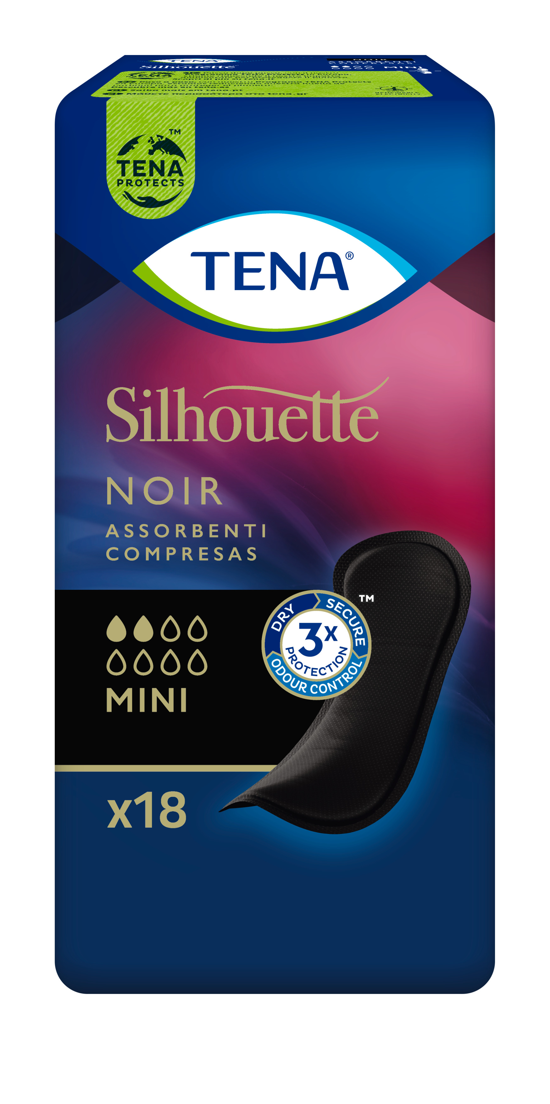 Pidamatussidemed TENA Silhouette Noir Mini on loodud spetsiaalselt musta värvi aluspesu jaoks, et tagada kerge põiepidamatuse korral diskreetsus. Side on õhuke ja musta värvi ning sobitub ideaalselt teie musta värvi aluspesuga, nii et te peaaegu ei märkagi selle olemasolu. TENA Silhouette Noir Mini pakub kolmekordset kaitset lekete, ebameeldiva lõhna ja niiskustunde vastu, lukustades uriinitilgad ja väikesed lekked sügavale sideme sisse. Dermatoloogiliselt testitud ja lõ...