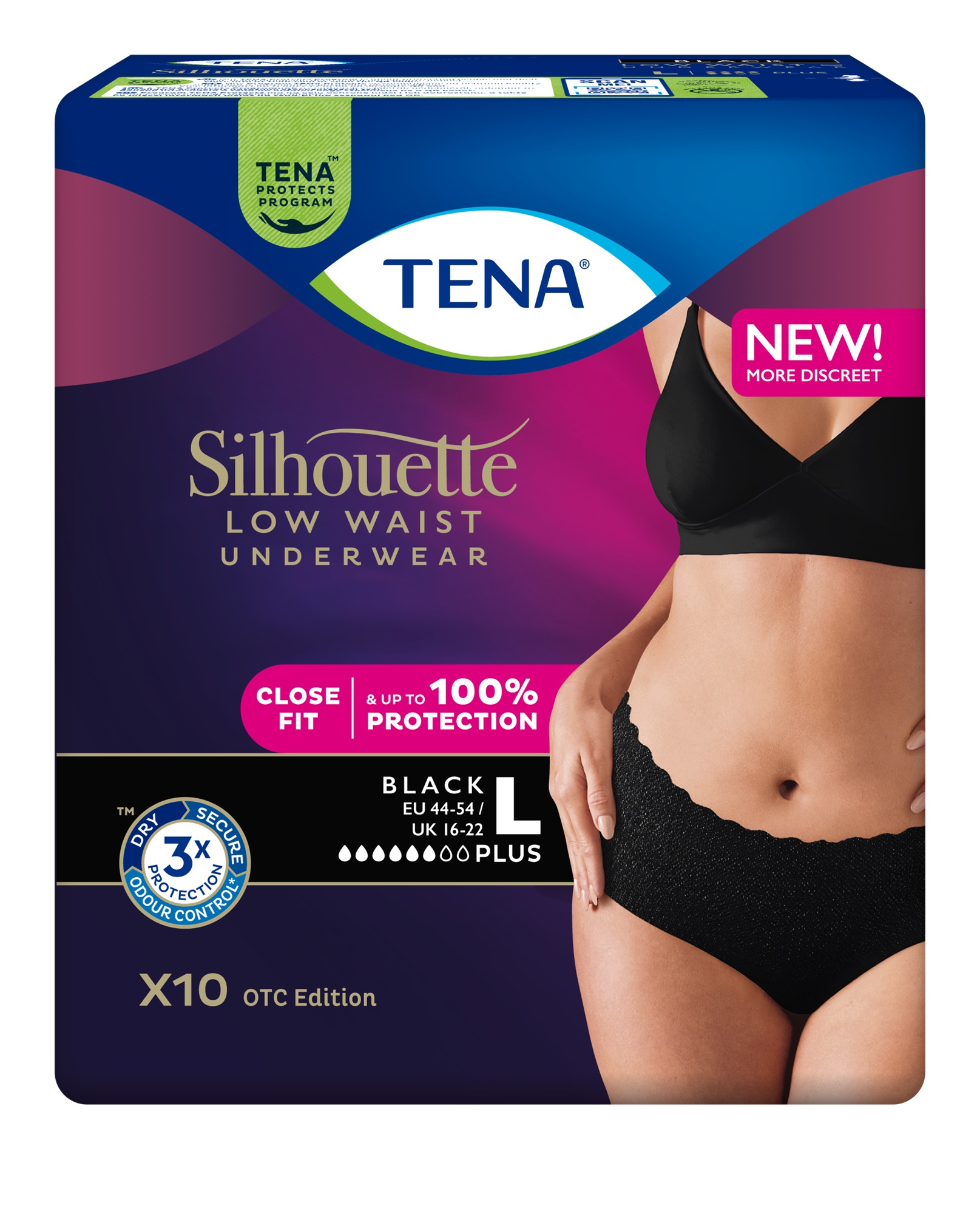 Pidamatuse pesukaitsed TENA Silhouette Noir Normal on loodud spetsiaalselt musta värvi aluspesu jaoks, et tagada diskreetsus. Kui kannate TENA Silhouette pesukaitsmeid, võite julgelt lahti riietuda igal pool. Pesukaitse on sama õhuke kui hügieeniline pesukaitsegi ja selle must värv sobitub musta värvi aluspesuga nii täiuslikult, et võite selle olemasolu lausa unustada. TENA Silhouette Noir Normal pakub kolmekordset kaitset lekete, ebameeldiva lõhna ja niiskustunde vastu,...